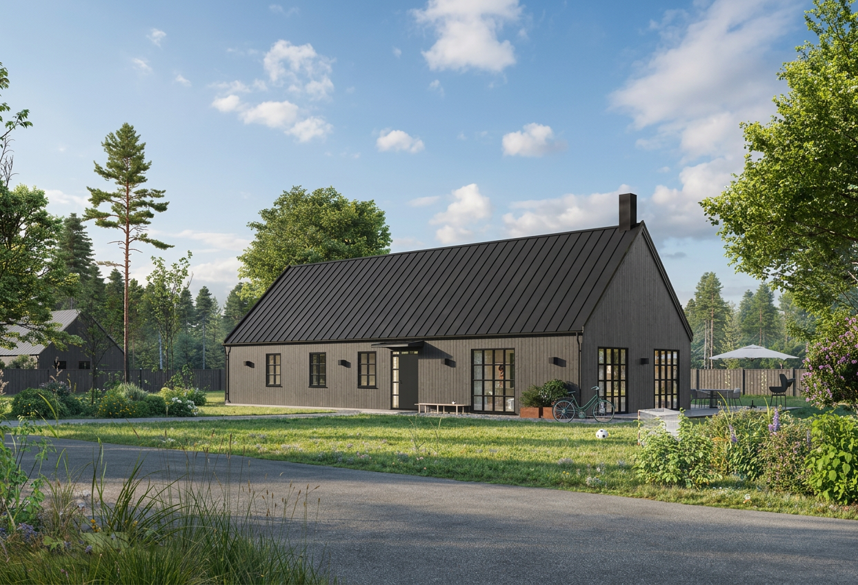 modernist exterior shot atellier house in the outside next to the house should be a tree the roff in rusty patina wall with glass architecture