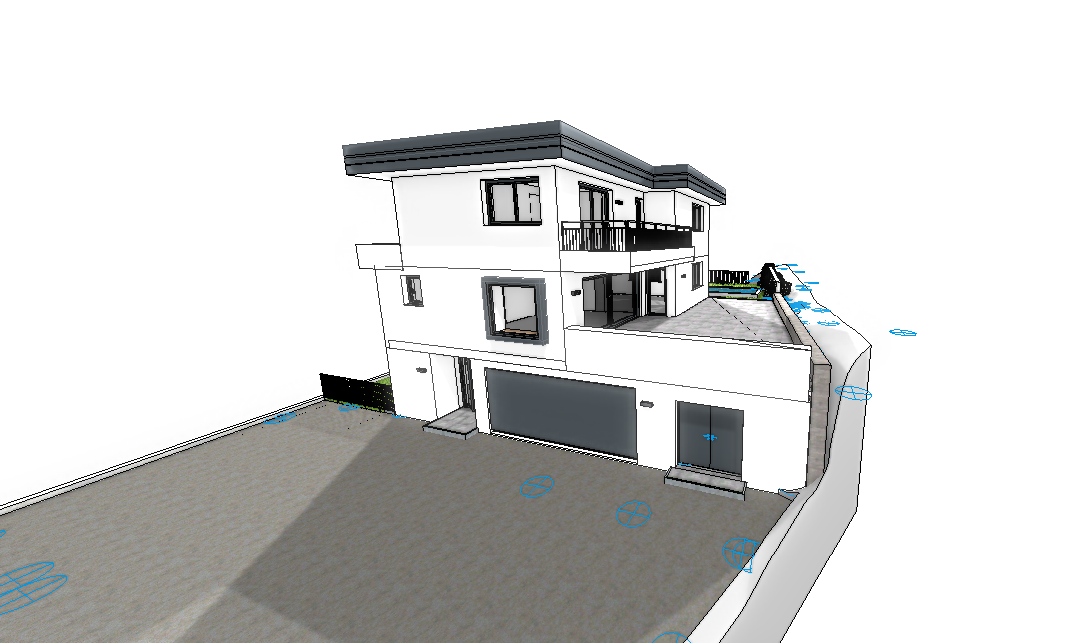 kannst du mir aus diesem bild ein fotorealistisches bild ohne hintergrund machen vorne im bild ist die einfahrt in asphalt