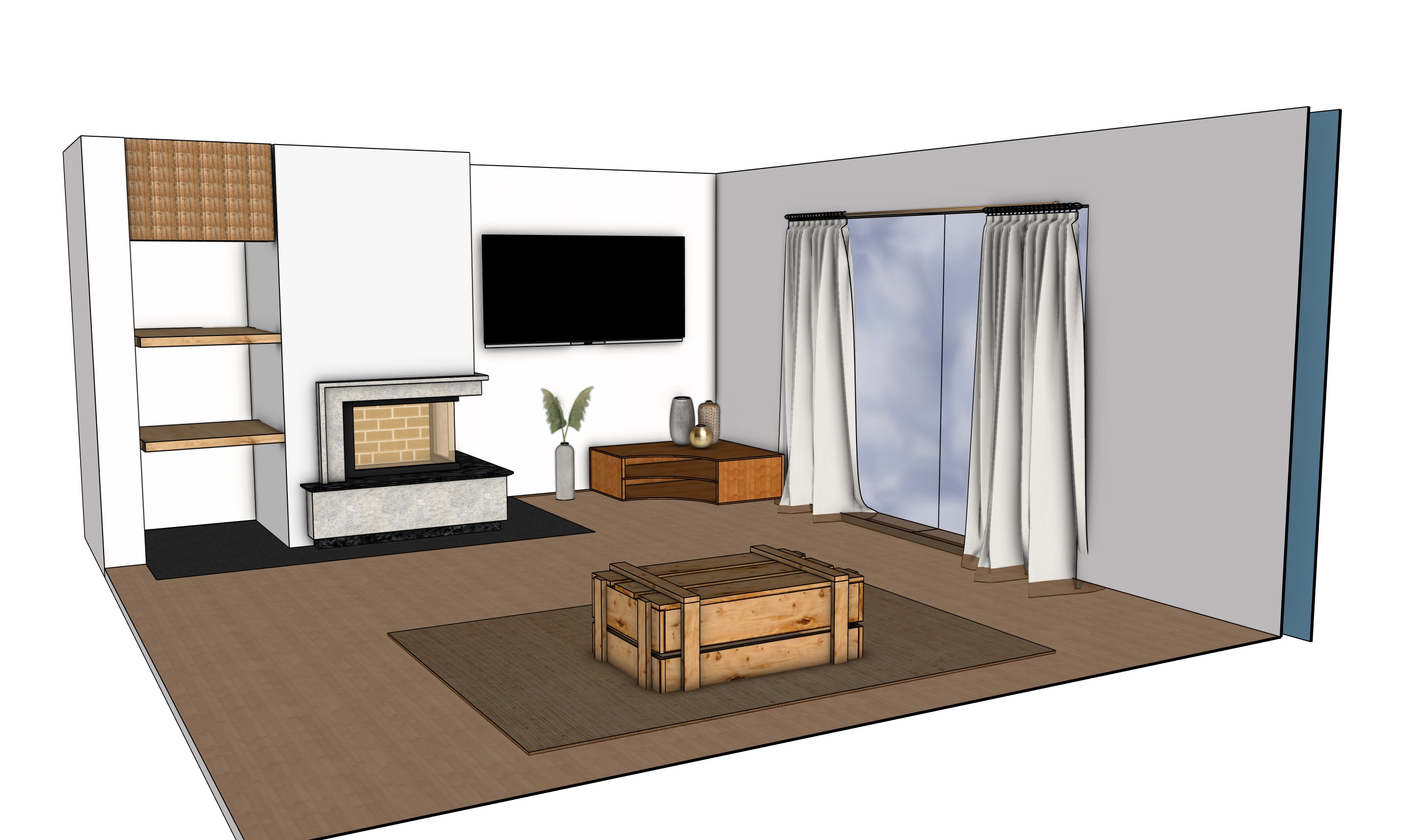 chemin e pierres noires bas de la chemin e en pierre tag res suspendues vieux bois sur la gauche murs blancs