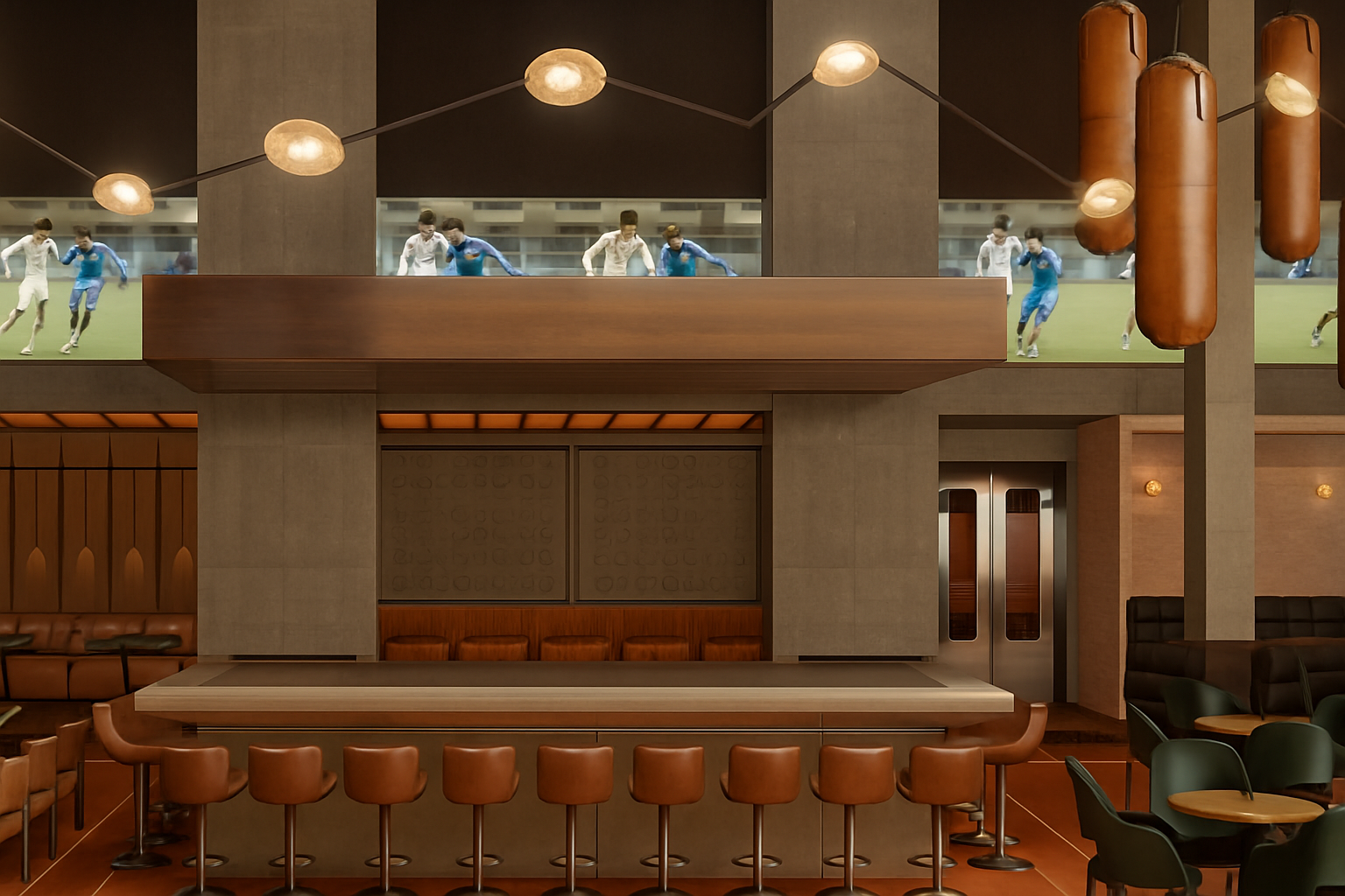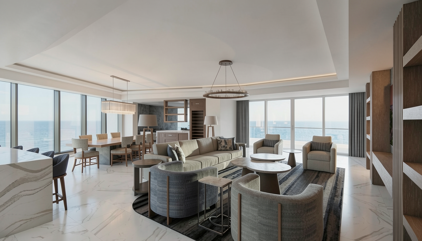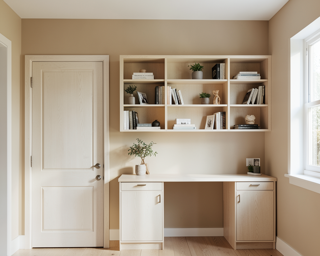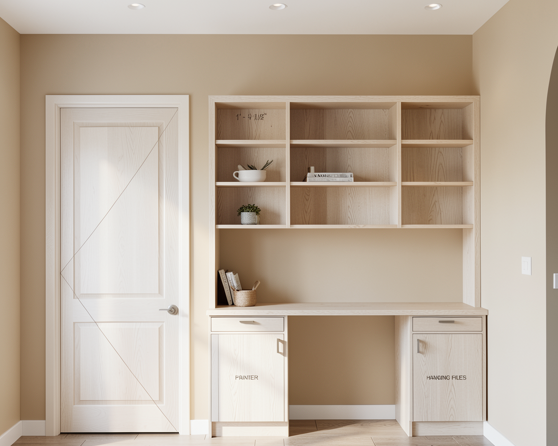 high end modern kitchen interior sage green shaker cabinets white quartz countertops golden hardware large kitchen island with open shelving contemporary gold branch chandelier herringbone walnut wood floor neutral walls with crown molding realistic lighting cinematic composition architectural photography style
