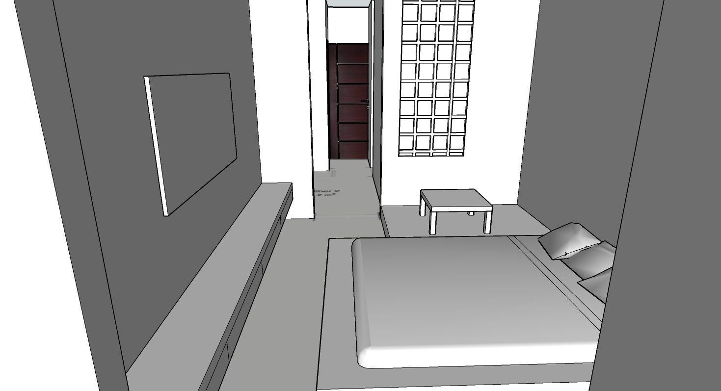 this is supposed to be japanese style bedroom of a hotel in japan the room measured around 3 2 meter wide x 3 8 meter deep bed i am thinking of futon type on the raised floor on the right side close to the camera the window is on the back of the camera but nowhere has windows except behind the camera make the design japanese modern minimalist for small room tv on the left put some decorative japanese style wall on the right