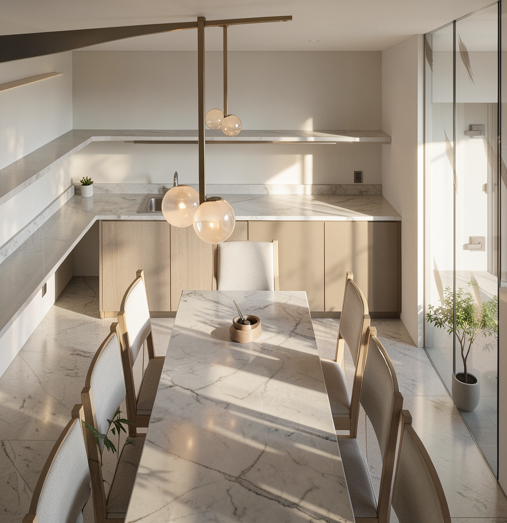 allow for soft natural light to enter the space through the glazing led strip lighting under the overheads