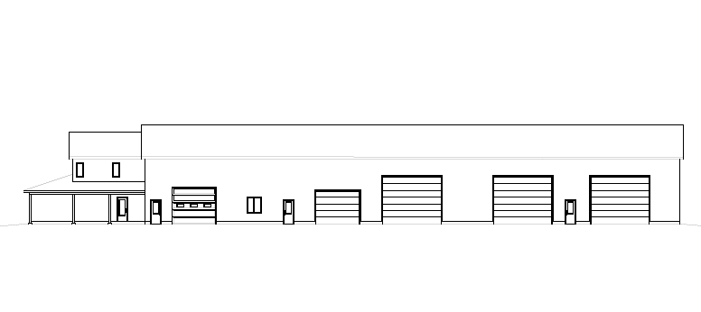 create a real life rendering using charcoal steel siding grey roof steel timber posts and polycarbonate overhead doors in a country setting