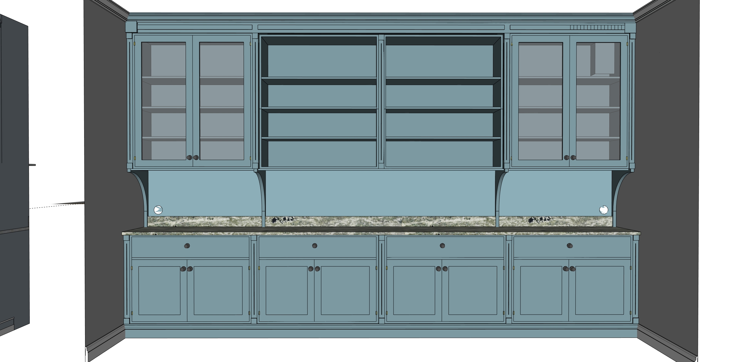 add french wooden floor ceiling and wall in a chalk paint in similar colour as the shelf
