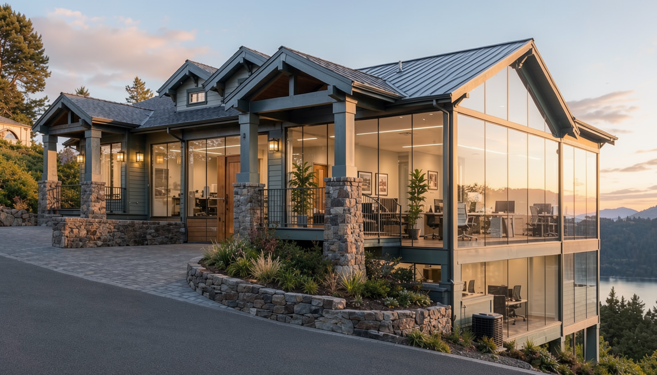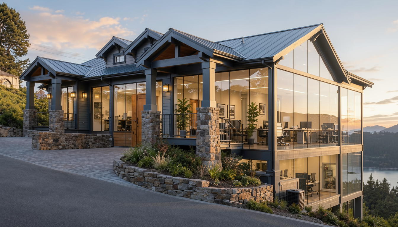 render this home in a dusk setting do not change anything else