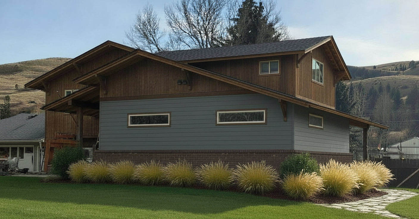 change the gray siding to a light cream color
