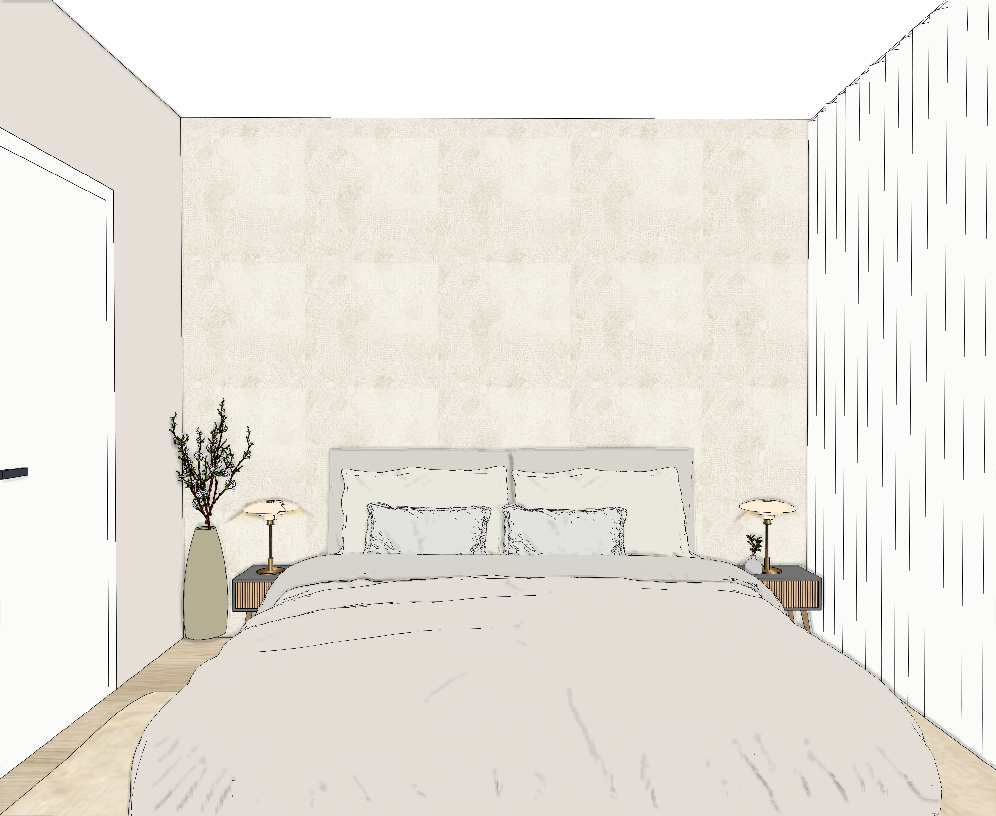 render maintain colour and furnitures add solid natural light from the window direction