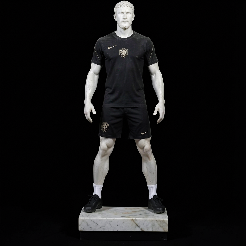 enhance this contemporary kitchen rendering while keeping all architectural volumes cabinetry layout proportions and materials exactly as shown do not modify the design millwork configuration island dimensions hood bulkhead ceiling details or overall composition maintain brutalist stone island keeping stone material scale and color as is matte finish white cabinetry is all solid white some doors have heavy molding none of the white cabinetry has glass man should be a soft silhouette wall behind hood has stone material as is scale as is matte highest ceiling is poured concrete toned brass faucet and handles dark painted ceiling with almost black stain color wood plank insert in ceiling above the island medium brown wood flooring lighting upgrades only no design changes add warm vertical integrated led lighting 2700k 3000k inside the glass cabinets the interior of the glass cabinets should be dark almost black stained wood the shelves should be glass and should have some glassware introduce concealed under hood lighting that gently washes the stone backsplash enhance the sculptural pendant so it emits a soft warm diffused glow elegant not harsh introduce subtle ceiling spotlights that graze the stone slab and highlight material texture without flattening it mood atmosphere create a chic warm sophisticated ambiance the space should feel intimate refined and quietly luxurious lighting should emphasize contrast between the deep cabinetry and the luminous marble island the dark wood should read rich and layered not flat black the brass should feel brushed and softly reflective never shiny or brassy the marble should glow gently under warm light revealing its veining overall feeling a high end editorial interior photograph soft and natural moody yet welcoming dramatic but balanced refined warm inspiring avoid changing materials changing finishes changing proportions overexposing highlights cool lighting temperatures adding new decorative elements render as a photorealistic cinematic interior shot with depth soft shadows and natural light falloff