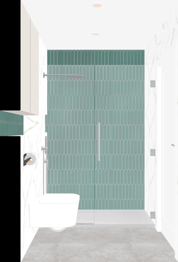 add led light under the drawer above the toilet and on the top of front wall between ceiling and wall do not change anything there is no window make cupboard light beige not grey