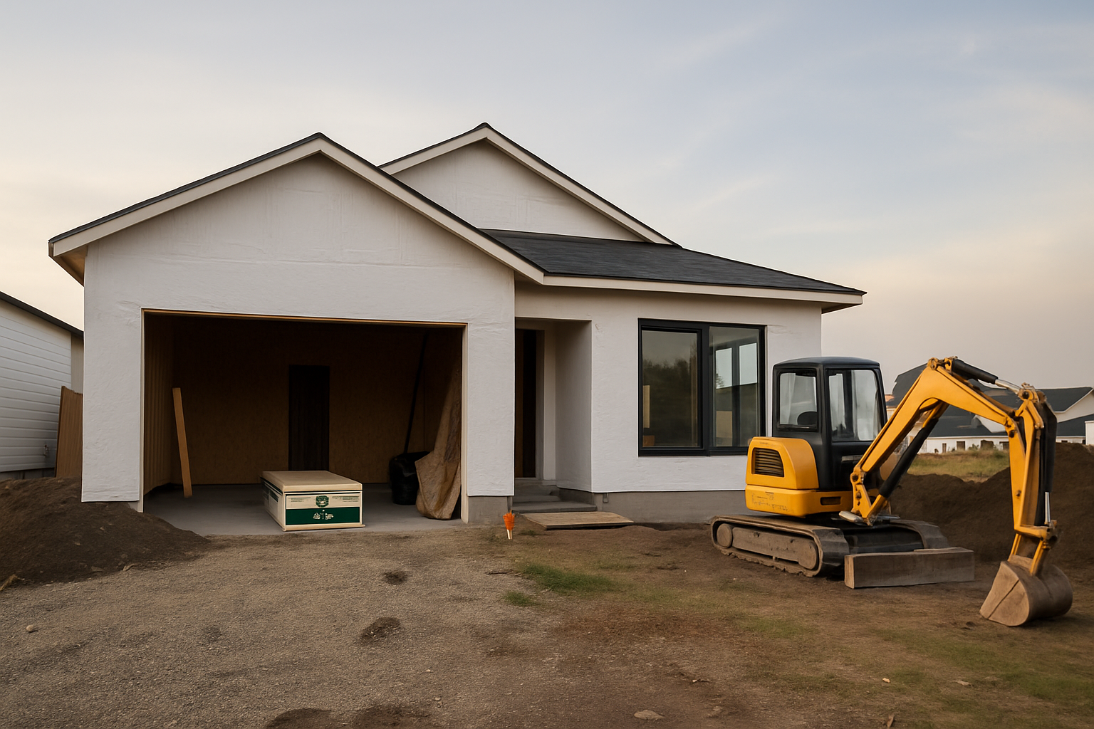 photo quality spanish style home in phoenix arizona the blue skies are clear at dusk and there is a lot of accent lighting in the front sandy areas add some desert plants show some furniture inside the house