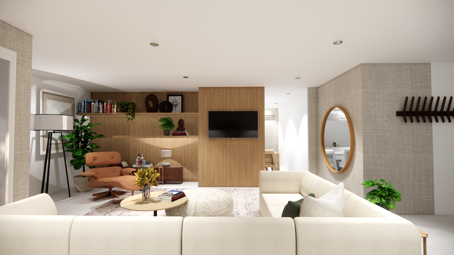 generate hyper realistic architectural textures and materials with absolute fidelity to the original design do not alter stylize exaggerate simplify or distort any geometry proportions materials colors or finishes preserve exact material properties true texture scale grain direction reflectivity roughness imperfections seams joints and edge softness as in real construction lighting must feel natural and photographic not rendered add warm 2700k ambient lighting from recessed ceiling lights high hats subtle and evenly diffused introduce soft natural daylight glow entering the space neutral and balanced avoid harsh shadows blown highlights artificial contrast or cinematic effects overall mood warm calm lived in editorial realism camera behavior true to life lens perspective correct exposure and white balance no wide angle distortion natural depth of field output should be indistinguishable from professional interior photography suitable for elle decor luxe florida design architectural digest no filters no stylization no ai artifacts keep everything as close to real photography as physically possible