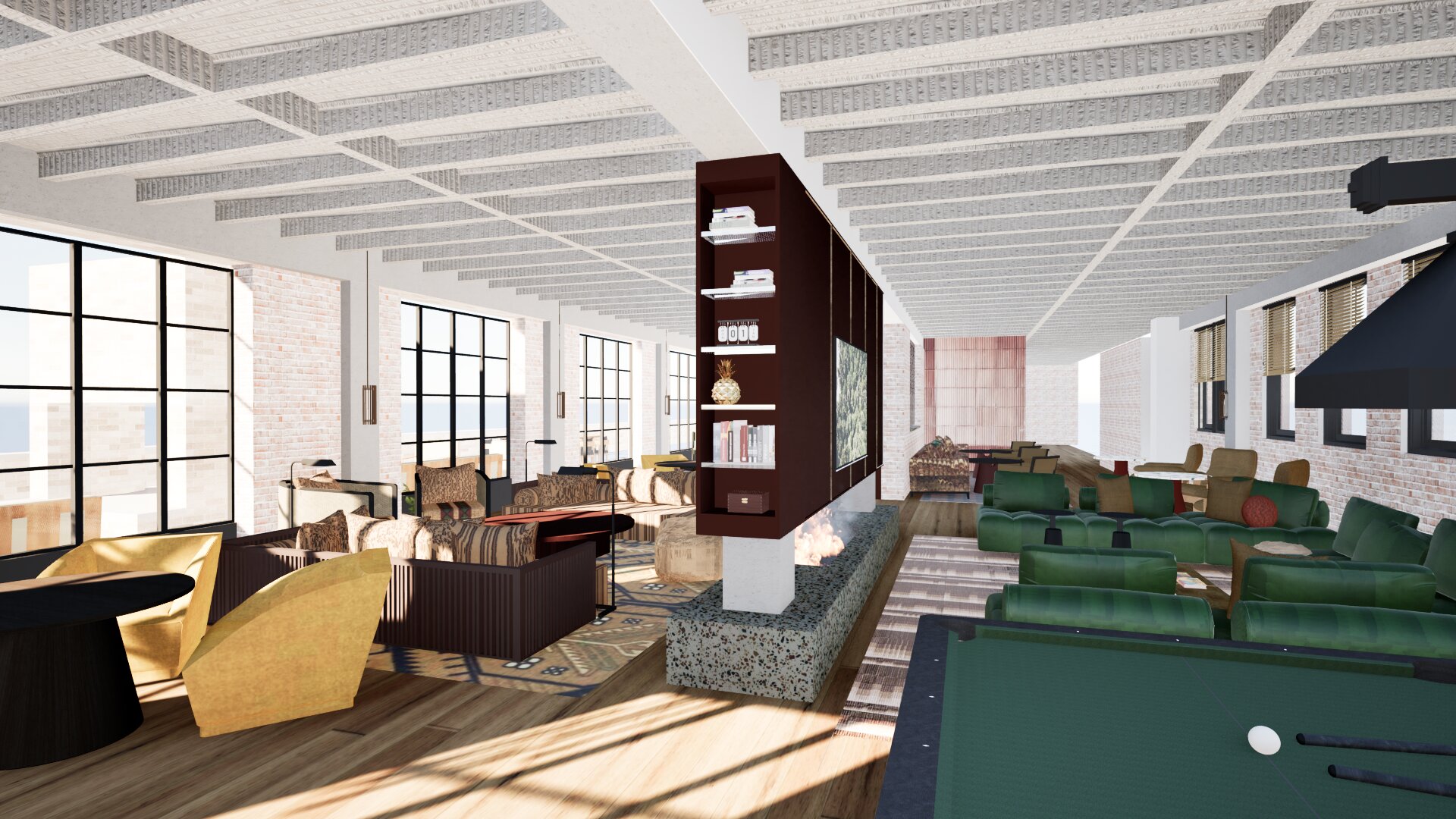 prompt hospitality lounge clean architectural photorealism photorealistic interior architectural image of a hospitality lounge based on the provided twinmotion render maintain the architecture finishes and furniture exactly as shown render in a clean professional style suitable for architectural presentation camera setup 28mm lens aperture f 5 6 iso 200 shutter 1 125 sec white balance 4600k for balanced warmth and neutral whites style fujifilm xt3 8k uhd raw photo look fine film grain lighting soft indirect natural light with controlled interior accent lighting wall sconces coves downlights emphasize even illumination realistic bounce and gentle contrast no blown highlights modern bright lighitng tone natural color range strong midtone definition subtle shadow gradation no hdr artifacts material realism high fidelity surface detail wood grain matte stone woven fabric brushed metal low gloss finishes composition eye level view clean perspective lines no tilt distortion maintain depth with soft falloff in the background post look minimal vignette slight sharpening neutral color correction goal showcase architectural intent and material authenticity timeless composed and photorealistic without stylization architecture
