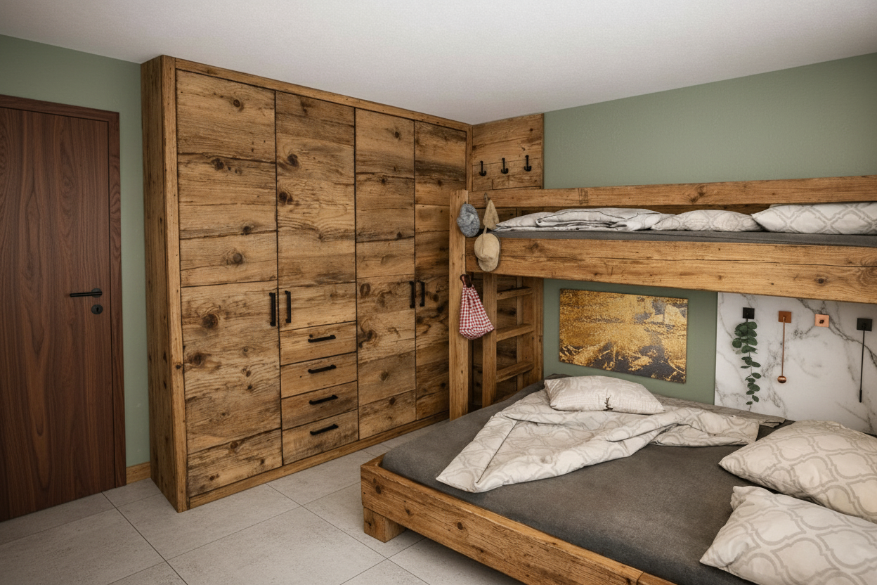 make realistic add diffuse led light on the sides top and bottom of the wooden elements make the mirror in the back reflective show microcement texture and betonlook wall texture better