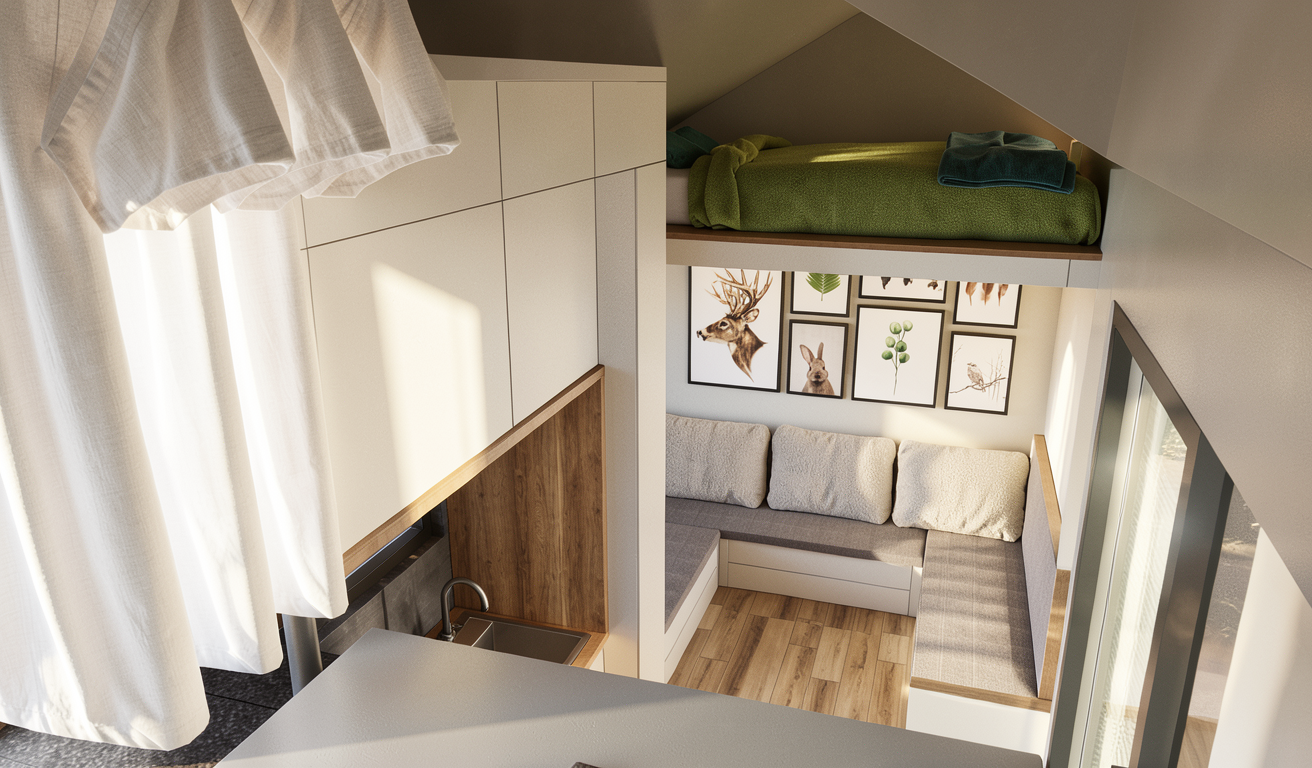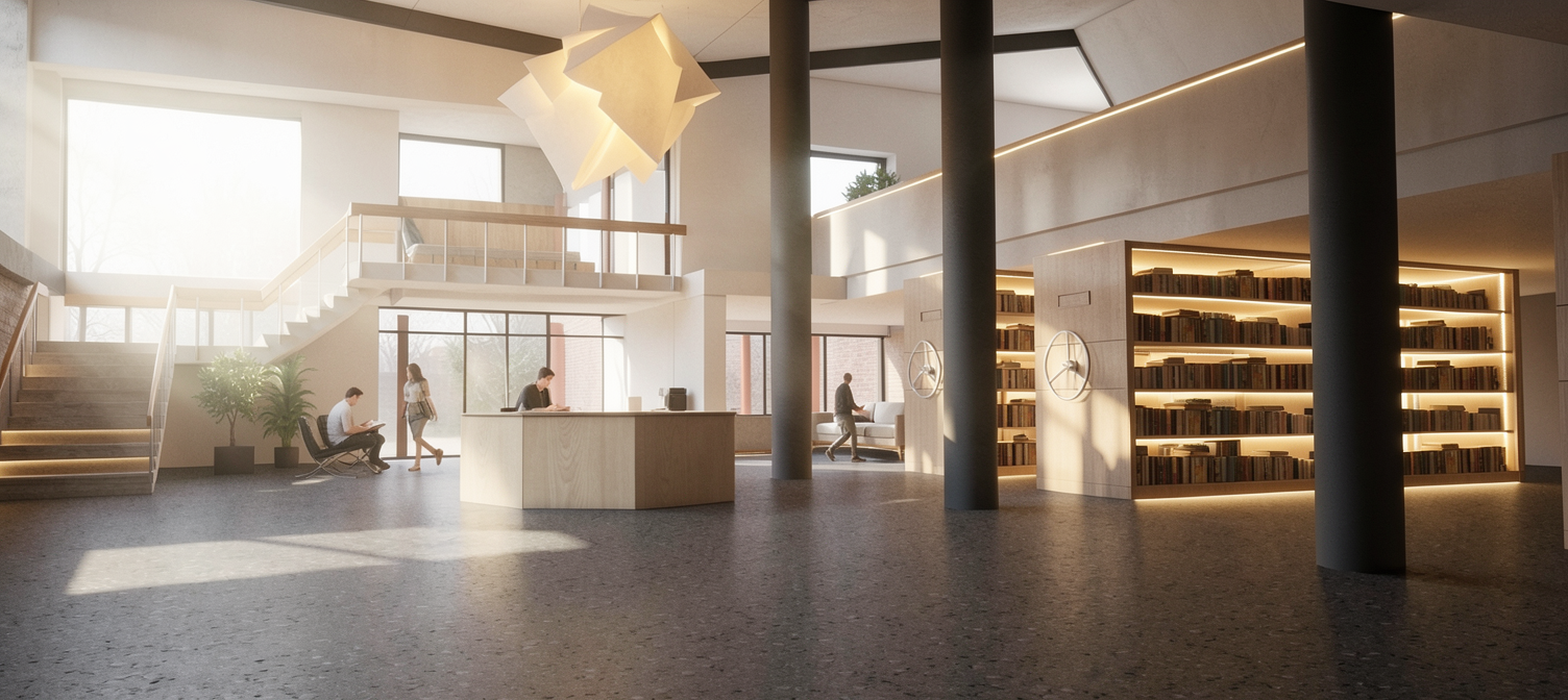 create ultra realistic images without changing any structure shape design or materials do not resize jpegs beige wood vinyl flooring plain off white walls beige wall panels add indirect light add halway view in the windows white frame window