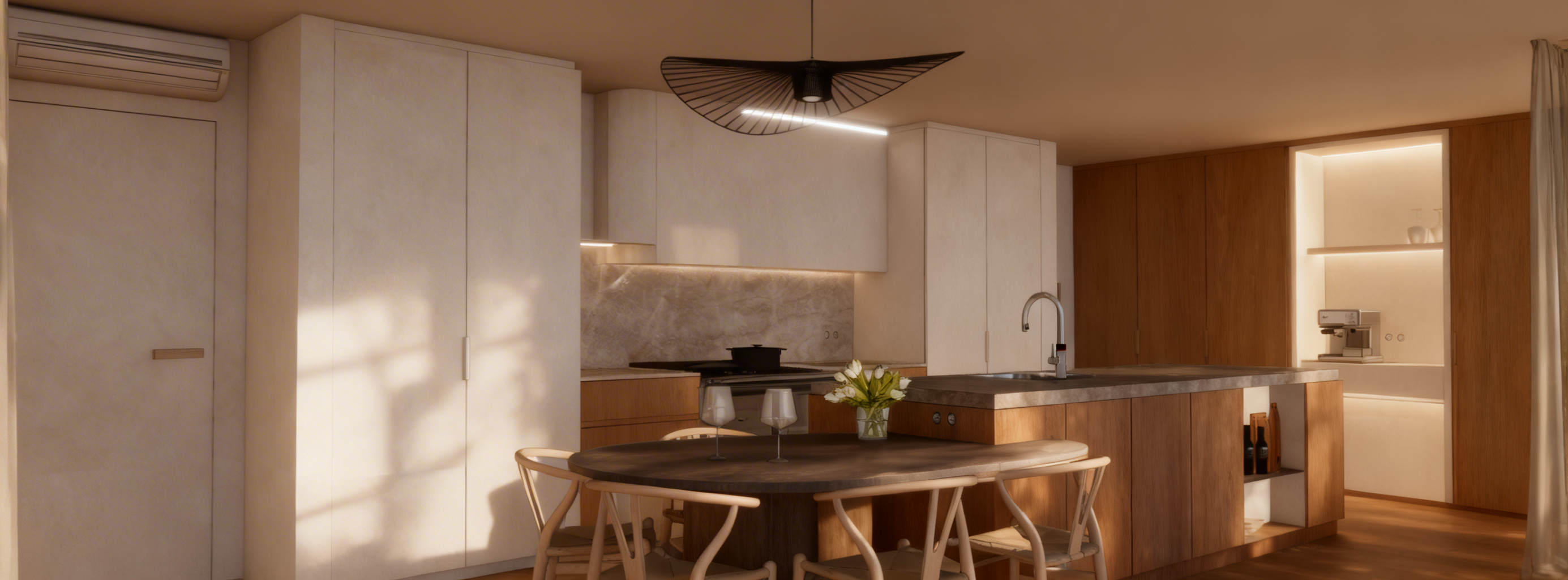 a photorealistic architectural render of a contemporary uk holiday lodge and caravan park viewed from an elevated oblique angle the scene features neatly organised modern timber clad holiday lodges with dark roofs arranged along gently curving internal roads in the foreground show three rows of rectangular single storey lodges positioned on individual plots each with paved parking bays and small lawn areas at the centre of the site depict a large curved community hub building with full height glazing and a low pitched roof facing towards a landscaped recreational area around the hub include naturalistic outdoor pools shallow water features and soft formed play spaces with light sandy surfaces pathways curve organically around these landscaped zones behind the hub building show a circular arrangement of additional lodges around a central landscaped island each positioned to face inward scattered throughout the site include more standalone lodges placed irregularly along winding roads with planted verges and open green spaces in the distance portray further accommodation units and boundary vegetation blending into the surrounding countryside use accurate materials dark composite roofing warm timber cladding tarmac roads light gravel footpaths and natural grass textures lighting should be bright clean daylight with soft shadows and a calm atmosphere emphasise high realism refined landscaping detailed textures and accurate massing consistent with the layout shown ultra realistic 8k quality architectural visualisation style