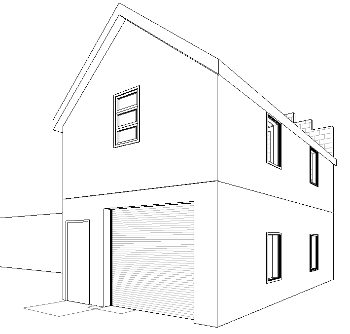 photorealistic image showing a gray garage building with back details and window framing exterior to be gray eifs summer image