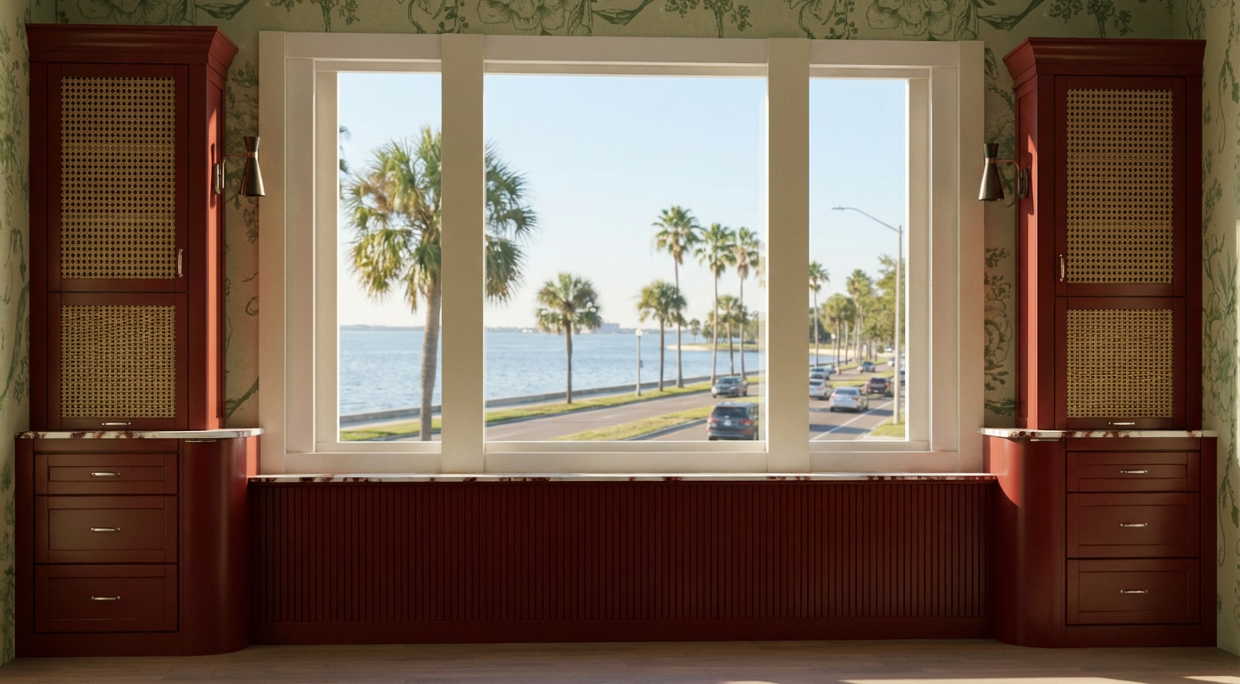 add a background to the window linen curtains and an antique pink cushion on the sofa