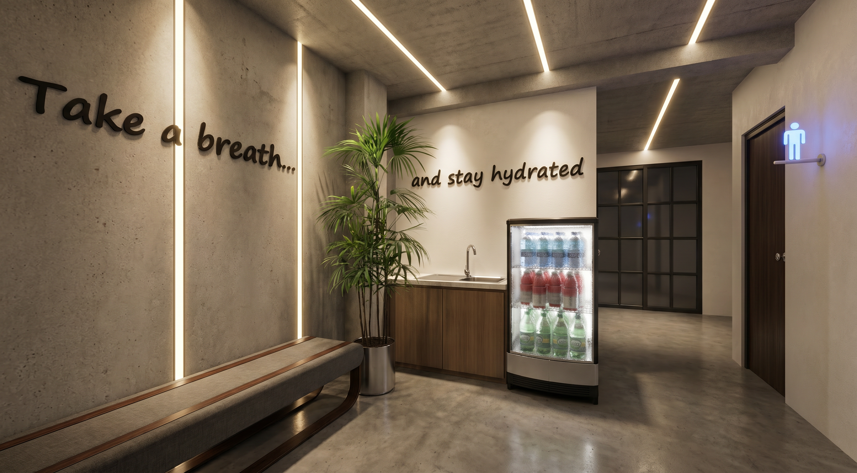 no signs on light mate ceramogranite floor inside glass few some outside clothes hanging mirror between wood panels and teracota unit