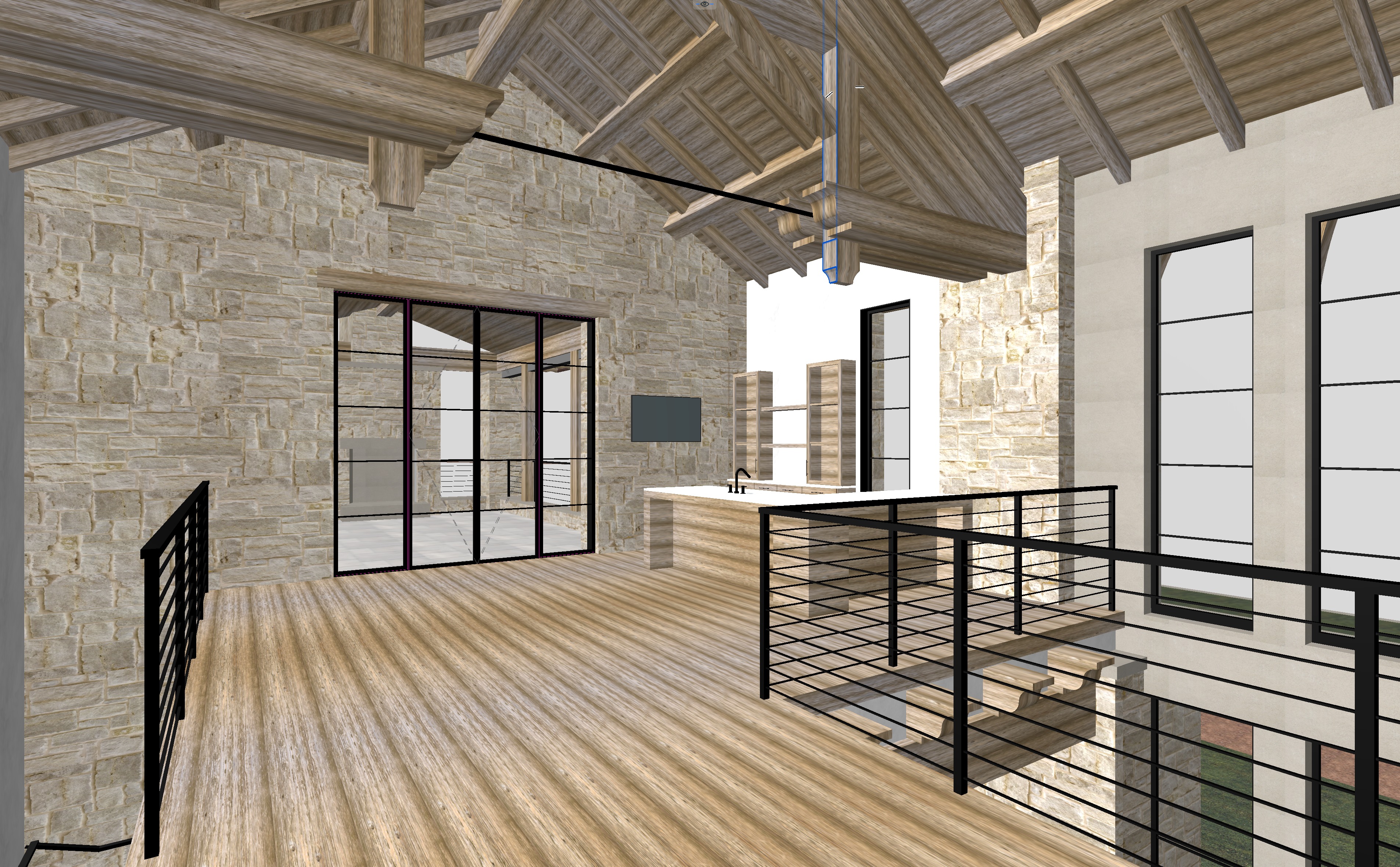 rough cut grandbury limestone plaster walls antique heavy timber cut limestone steel doors white oak cabinetry hand forged steel