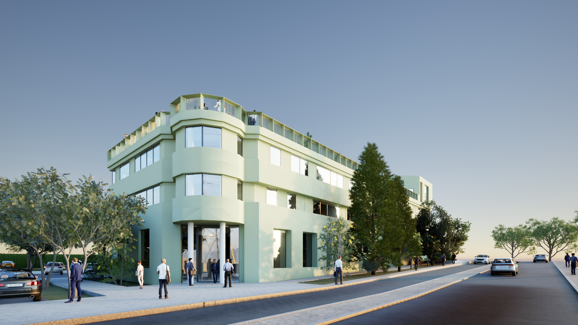 exterior shot the walls should be coated with green plaster