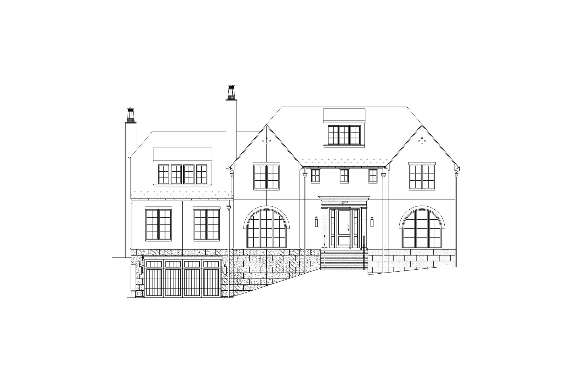 stucco white copper gutters and downspouts black shingles blue sky with clouds add trees at the back eaves and rake to be white remove front roofs rotate 30 degrees black frame windows remove front room add garage door add grass at front yard reduce driveway width downspouts and gutters to be black driveway towards the front rotate 20 degrees black gutters reduce 3 rake deph