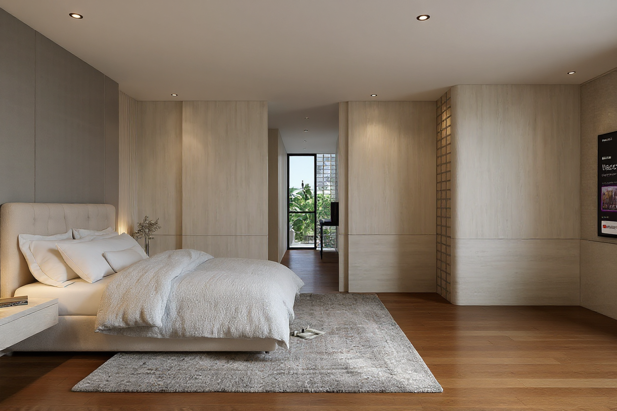 3000k light for the interior and put small armchair at the left corner infront of glass brick