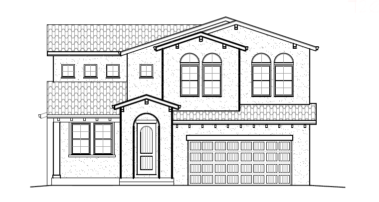 create an accurate 3d rendering from this 2d autocad drawing spanish style with light stucco exterior and brownish red tile roof include very minimal landscaping