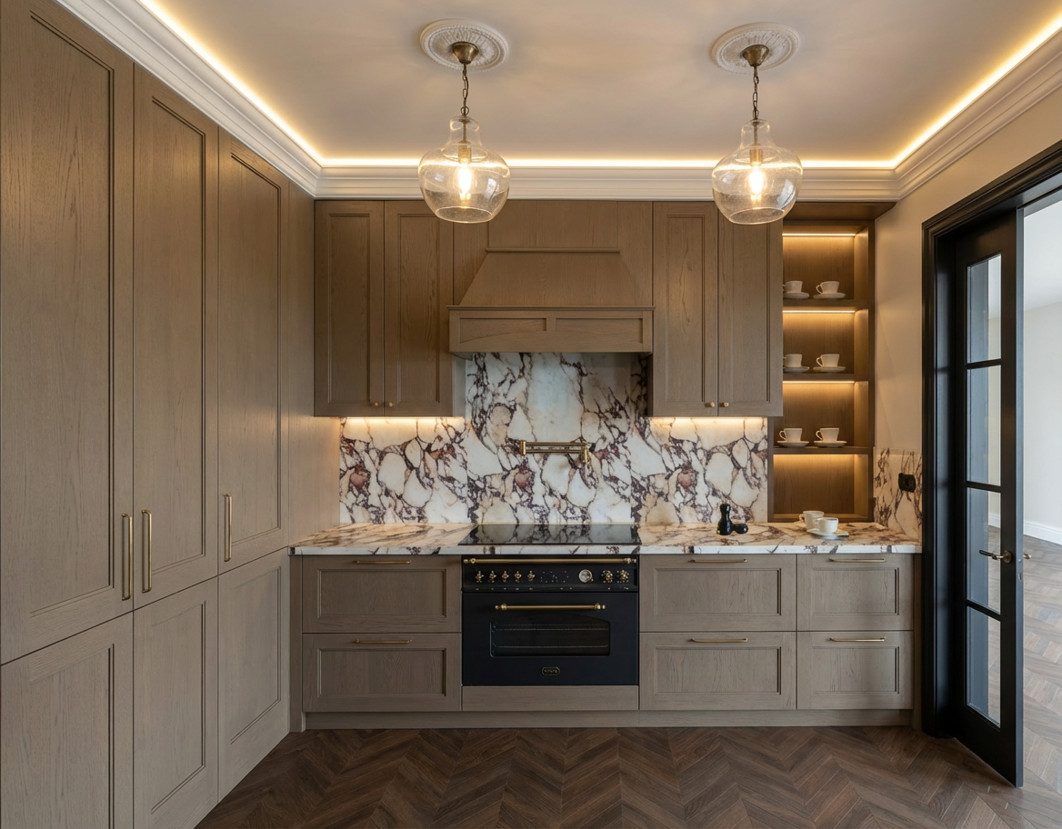 add the striped wallpaper to the blank walls