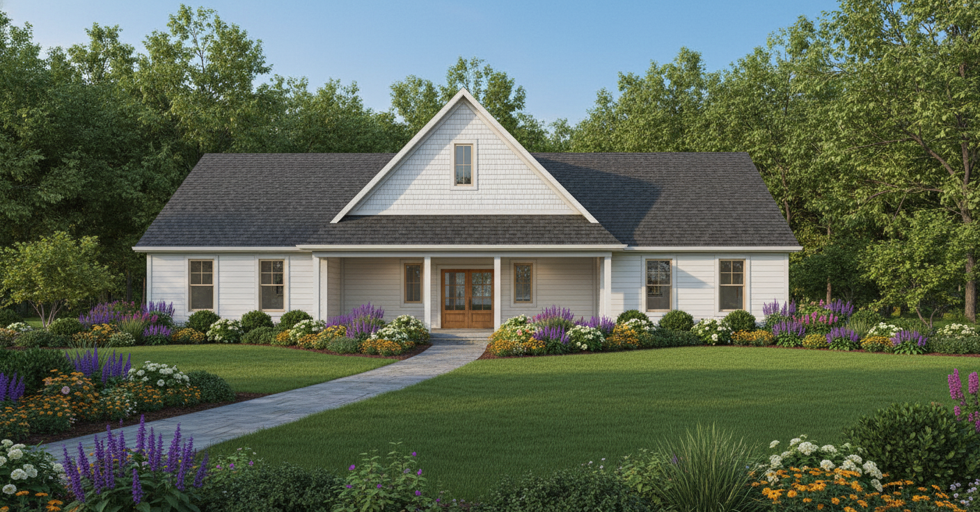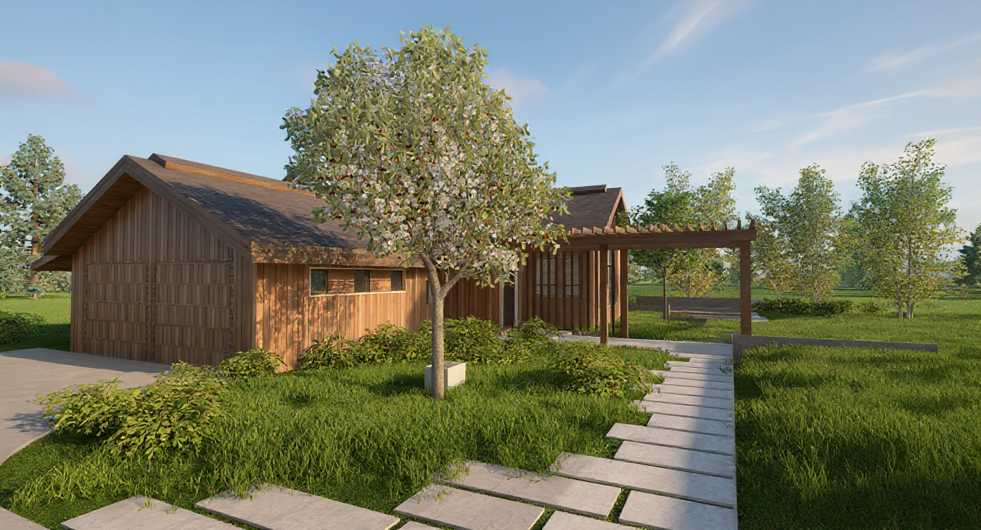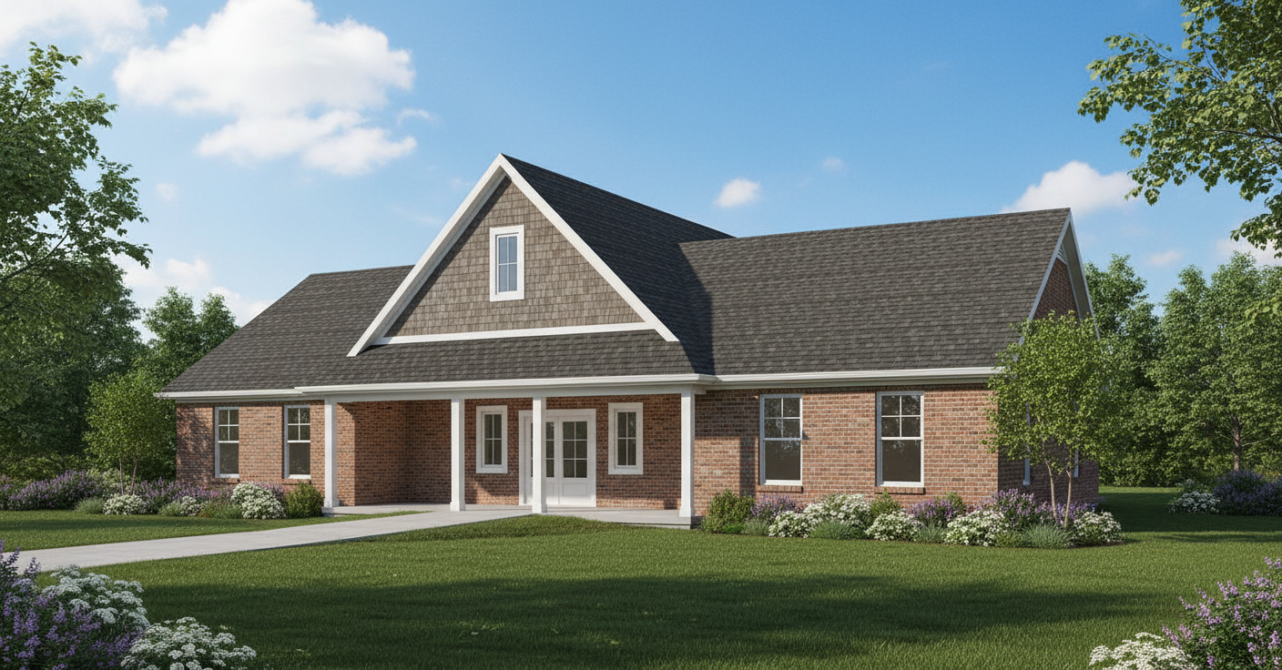 brick only at the base of the building horizotal siding at the first floor and shake in the dormer