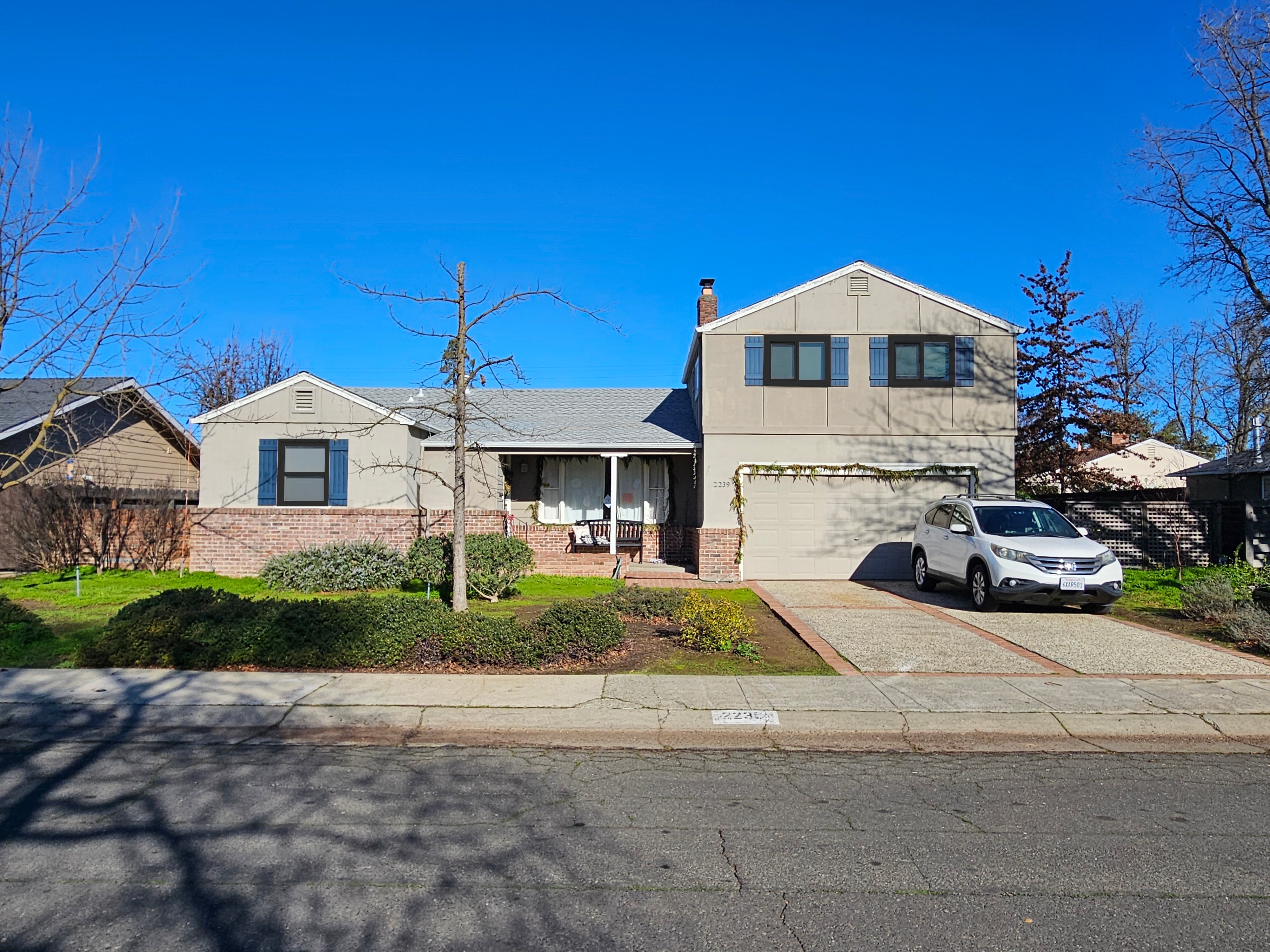 make the post and beam in the front entry a stained cedar dont change anything else