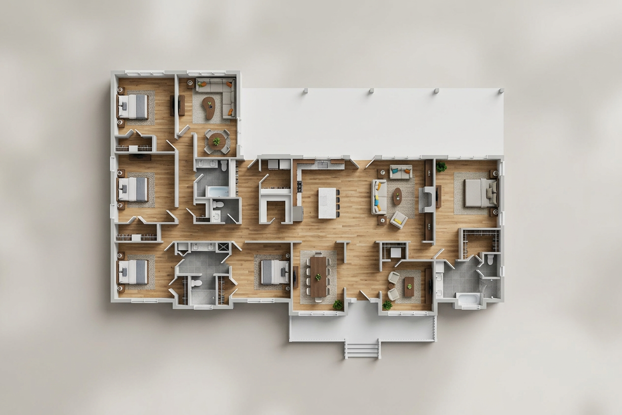das ist eine moderne k che die frontfarbe der hochschrankzeile in hell beige und frontfarbe der insel bronce geb rstet die gardine vor dem fenster aber sonnenlicht kommt auf den boden wasserarmatur in gunmetal farbe nische mit indirekte beleuchtung