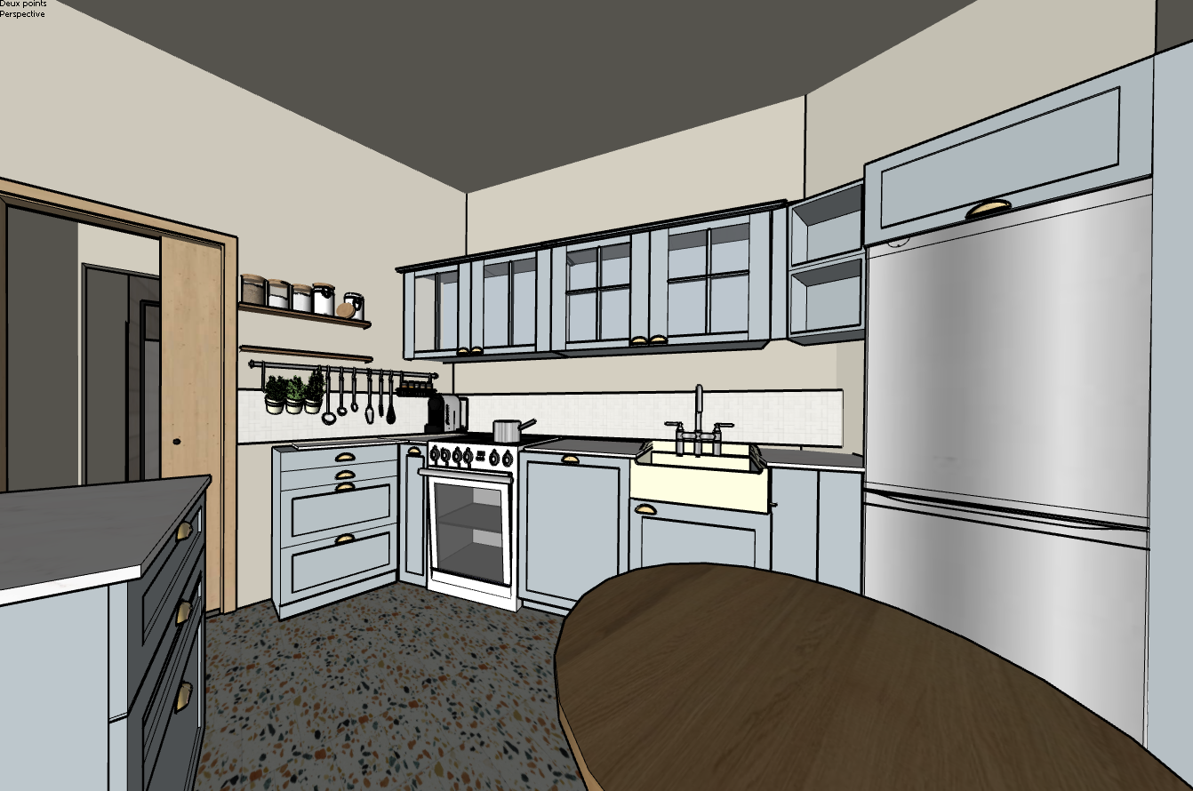 transform this sketchup model into a photorealistic architectural render keep the exact geometry proportions and layout of the model materials realistic textures with natural imperfections wood grain stone texture matte paint lighting soft natural daylight coming from windows global illumination realistic shadows style high end contemporary interior design with warm and elegant atmosphere add realistic details such as furniture fabrics reflections natural light bounce subtle ambient occlusion and depth camera architectural photography style wide angle 24mm eye level perspective render quality ultra realistic high resolution professional architectural visualization