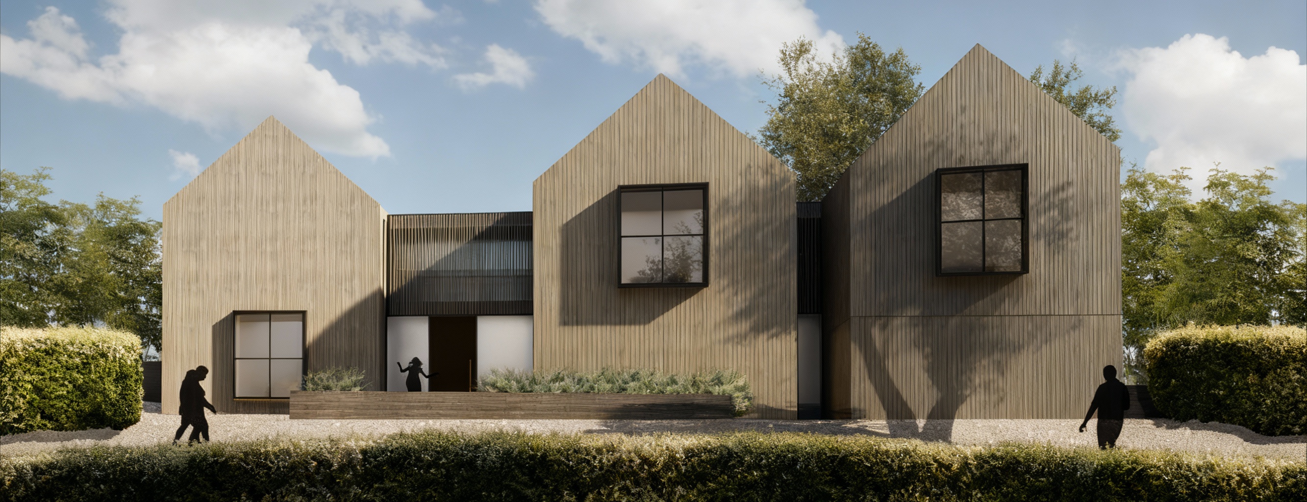 keep the pavement the same in concrete clouds in the sky lots of greenery and trees preserve all existing text on signs and surfaces grey reflections in the windows bright entrance audi a 6 and marcedes on the parking bright entrance architecture