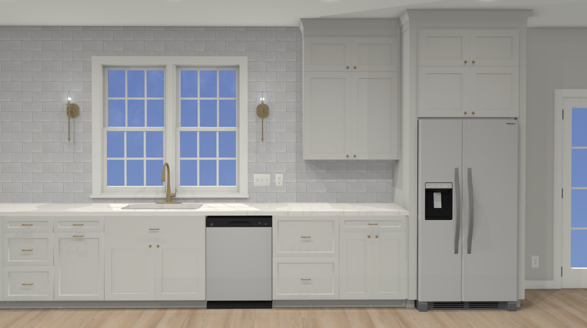 match the image exactly keep even lighting everywhere in the image the tile should be a light white color undercount sink