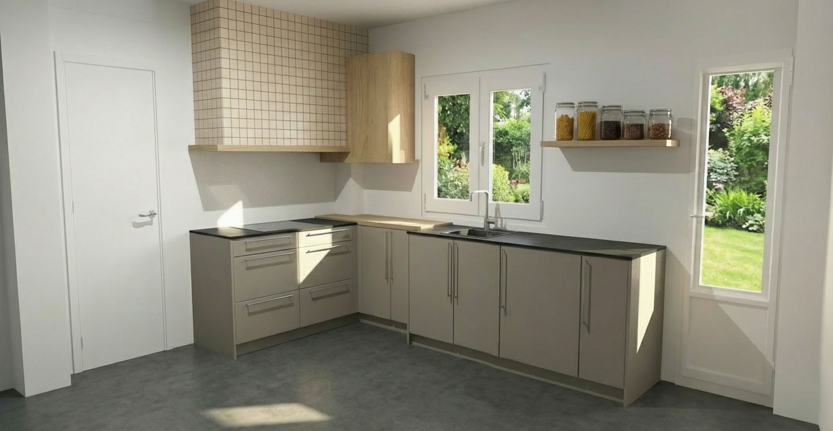 cambia el azulejo de la campana por uno cl sico en beig colocado en espiga y coloca subida de la encimera de la pared de la vitrocer mica en el mismo azulejo