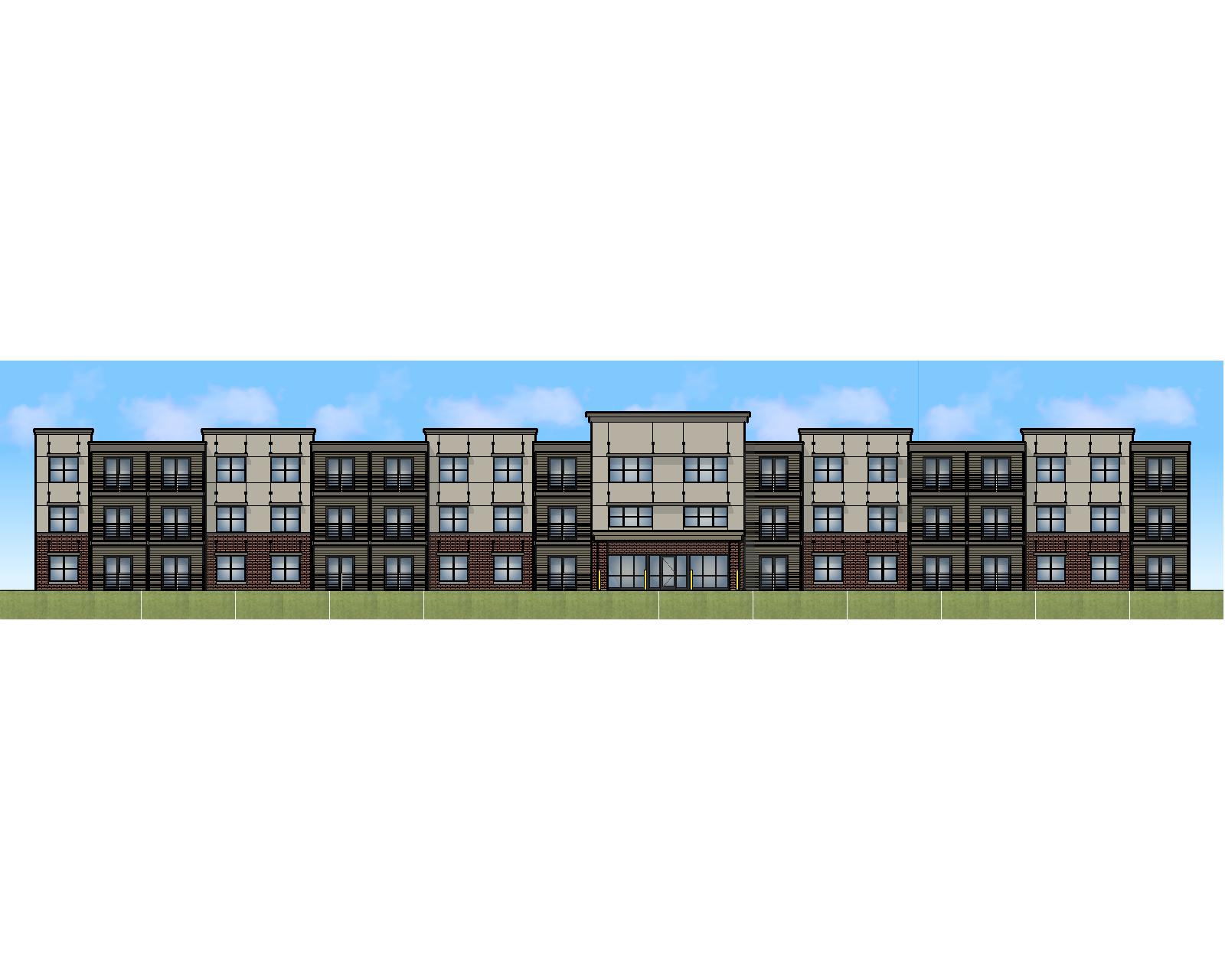 contemporary apartment building set on a quiet suburban street