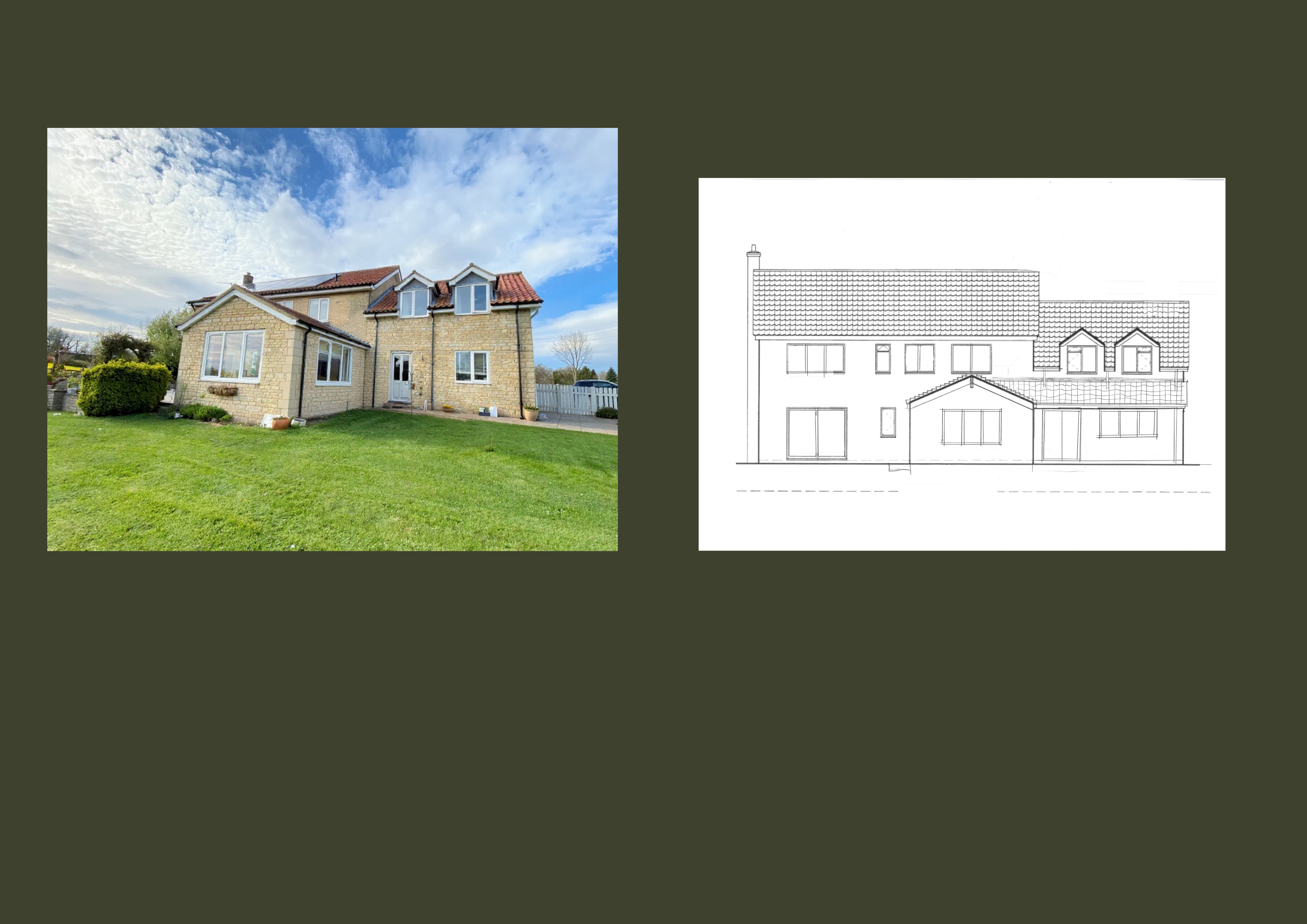 add the single storey extension shown on the sketch keeping everything else the same as the photograph