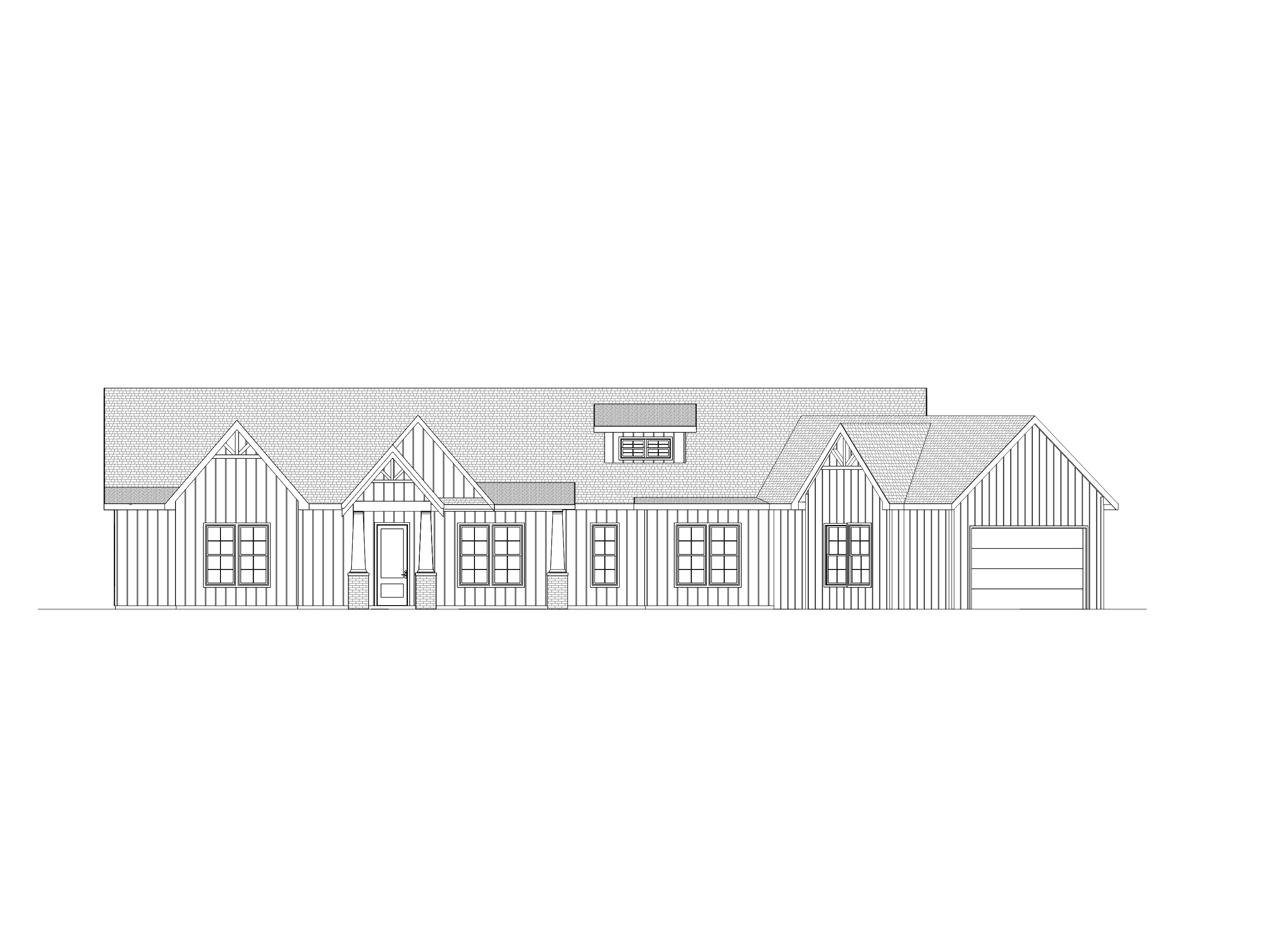 architectural hand sketch rendering of a modern farmhouse with steep gable roofs drawn in the style of an architect s copic marker concept sketch use strong contrast and bold color blocking with a white main siding and warm brick around base of columns windows should have black frames and cool blue reflections render expressive freehand linework with visible marker streaks and layering emphasizing depth and tone include foreground trees with dark trunks and soft green foliage loose shadows on the driveway and a soft blue sky wash behind the overall composition should feel energetic balanced and artistic like a presentation board sketch style tags architectural marker sketch hand drawn rendering copic style modern farmhouse charcoal contrast presentation board illustration architecture architecture