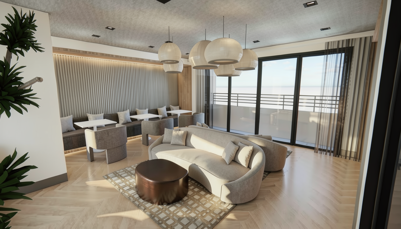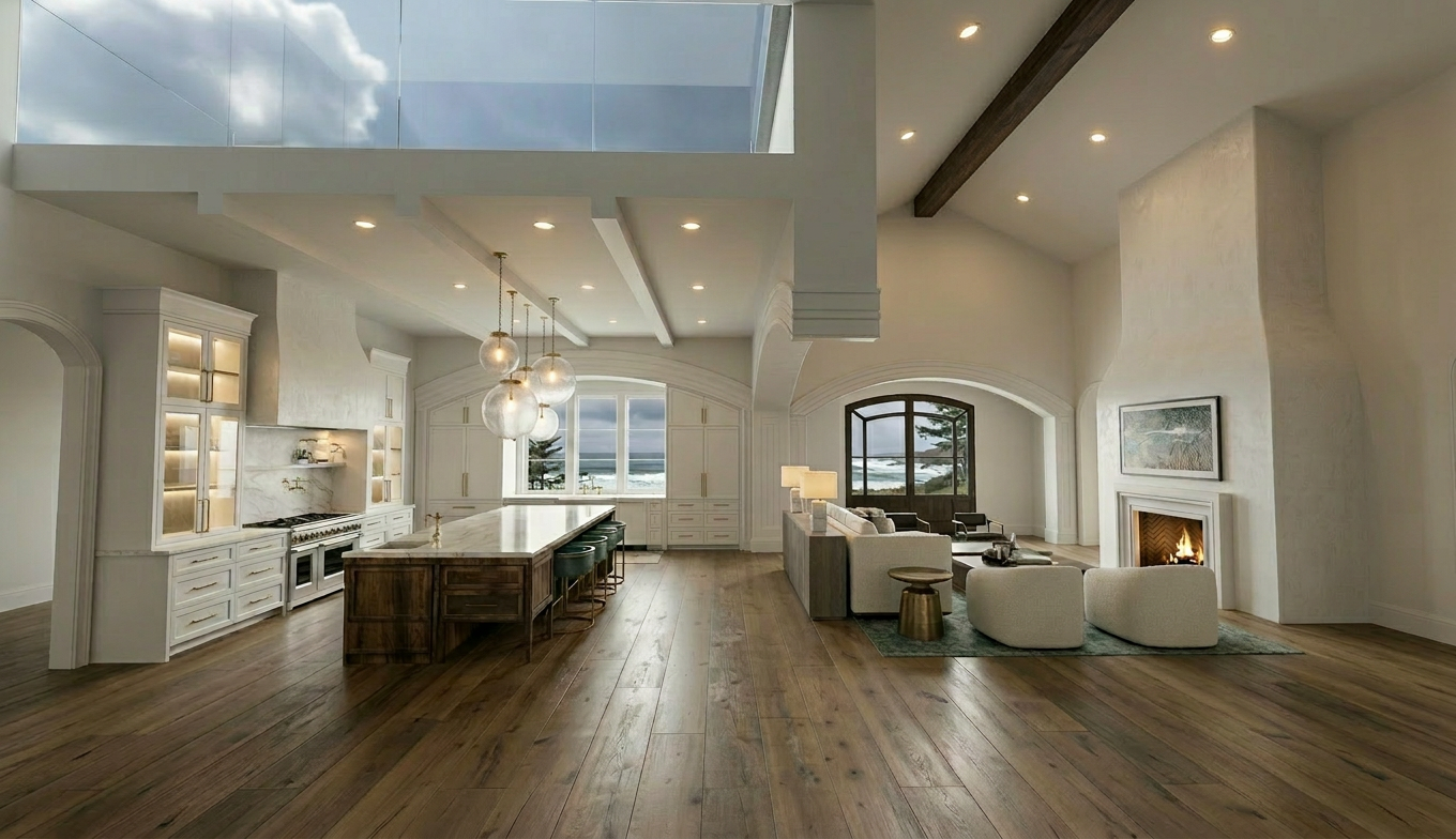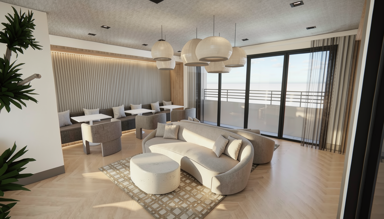 use the uploaded render as the exact base image maintain the original camera angle lens length perspective framing composition and spatial proportions exactly as shown do not alter architectural elements wall locations ceiling details millwork flooring layout window placement or built ins preserve all existing materials finishes textures paint colors tile stone wood tones and lighting design exactly as they appear maintain the same daylight direction shadow quality exposure and overall color temperature keep all furniture decor styling and layout exactly the same unless explicitly instructed otherwise do not reinterpret the design restyle the space modernize it or adjust proportions only modify the specific items that will be listed in the next prompt the goal is to enhance realism and material fidelity while preserving the original design intent 1 1 output should be photorealistic with natural material depth accurate reflections realistic fabric texture subtle imperfections and true to life lighting update the rug design to have an overall deep blue color with light grey ripple design make it look modern and elevated