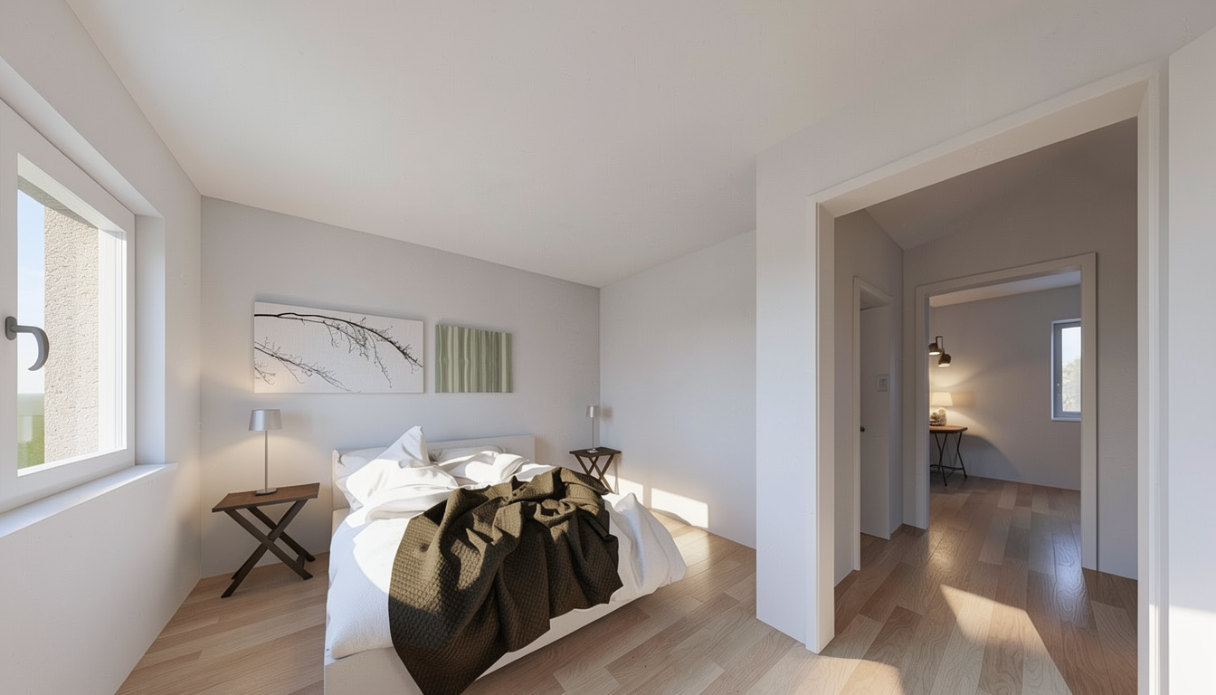 create rendered aerial floor plan in warm neutral pallette