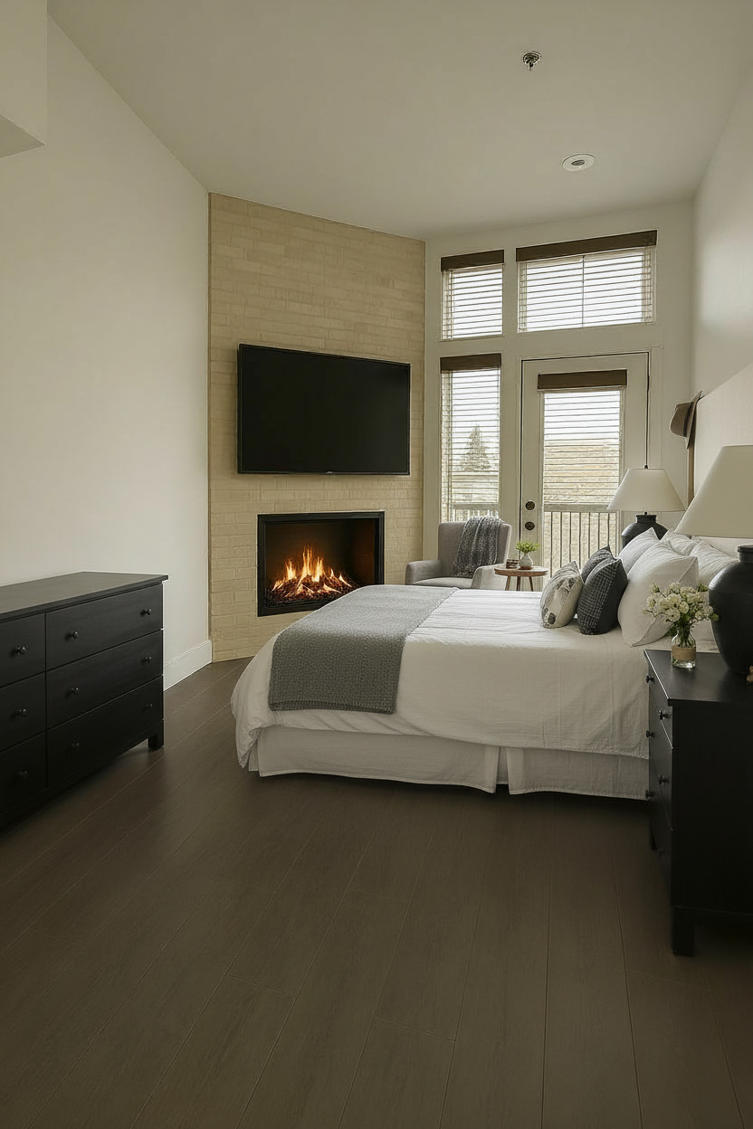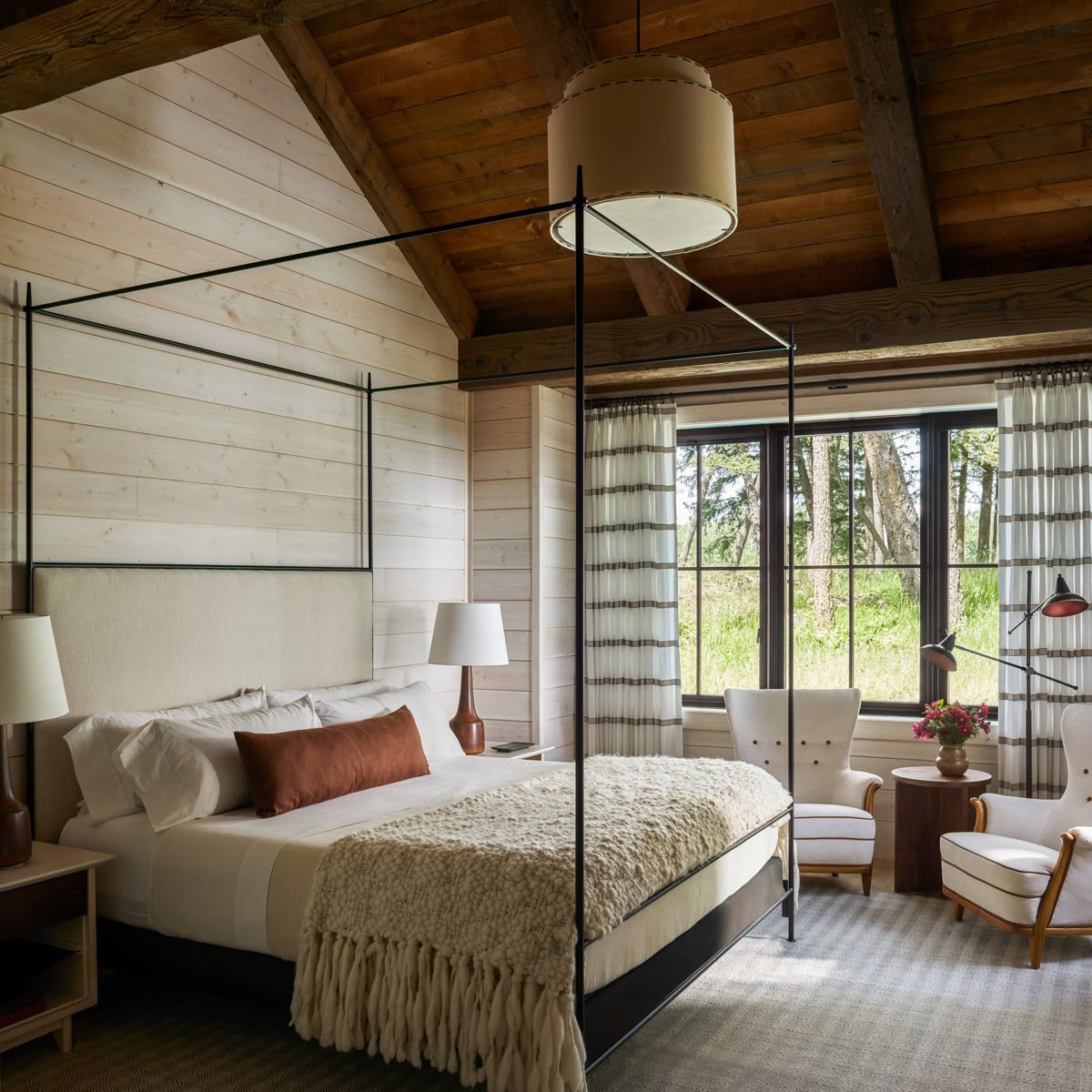 interior shot master bedroom in a cabin
