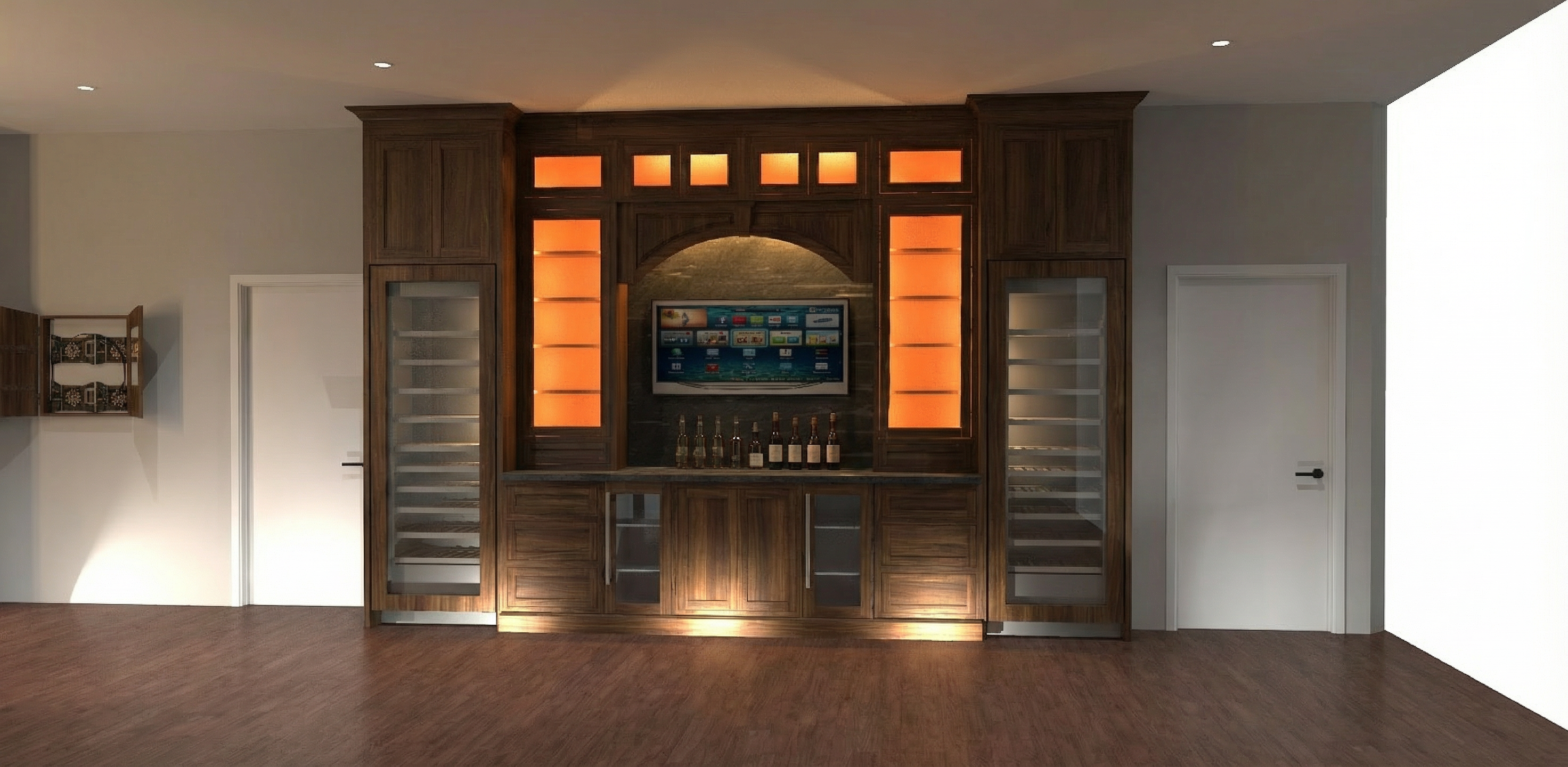 do not change the colors materials finish keep the viewing angle turn on the wall lights create smoke coming from the spa it is a basement without windows add a light along the bottom of the wooden bench the floor is painted dark purple concrete