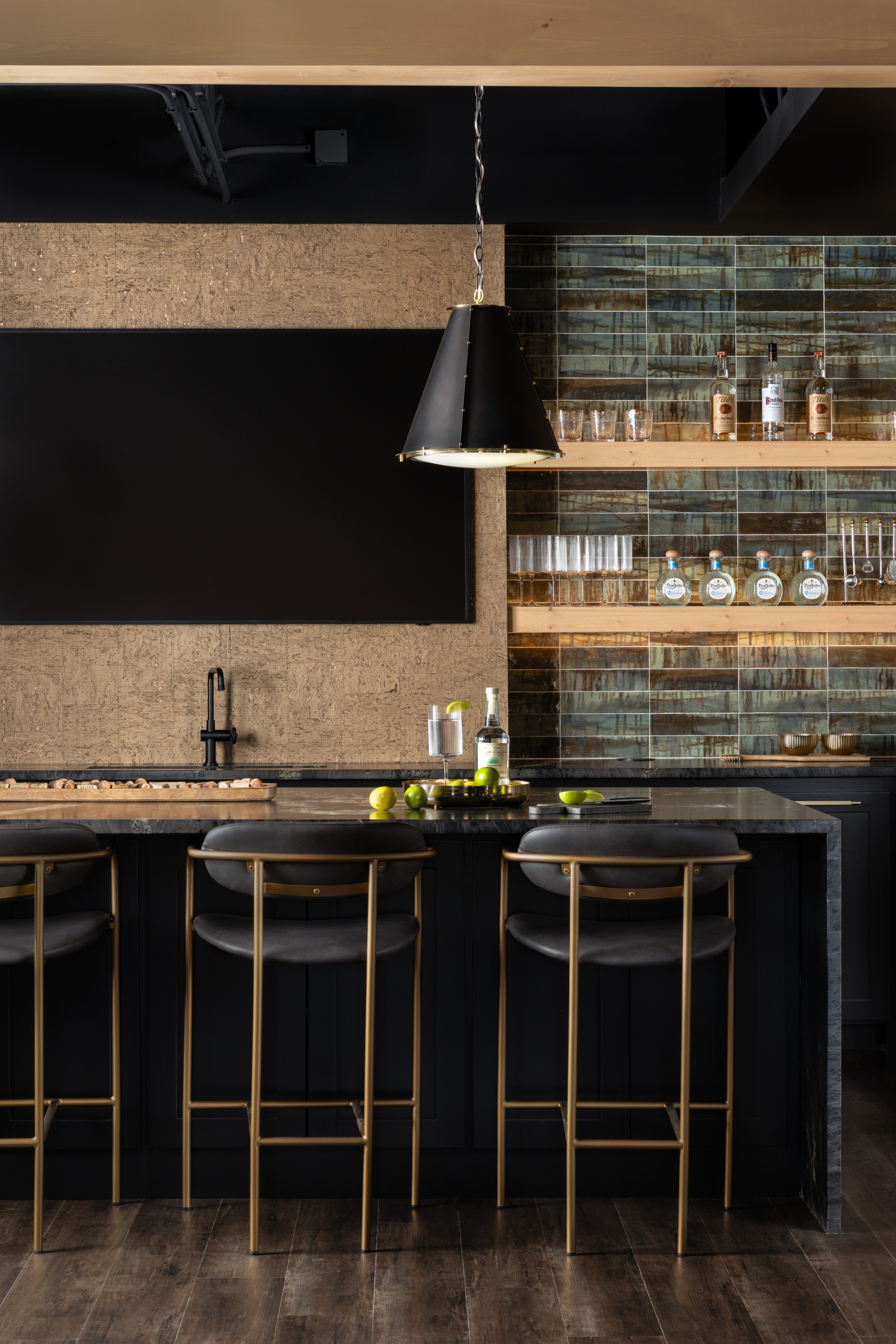change barstools to camel leather and add vase with flower to island