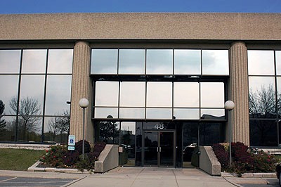 change existing entry swing doors to revolving doors on center with two single exit swing doors one on each side of that revolving doors