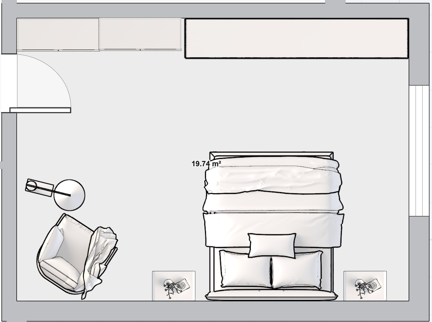 realizza un render in 3d posizionandoti sulla porta di ingresso della stanza dove c la finestra inserisci una tenda wave a tutt altezza