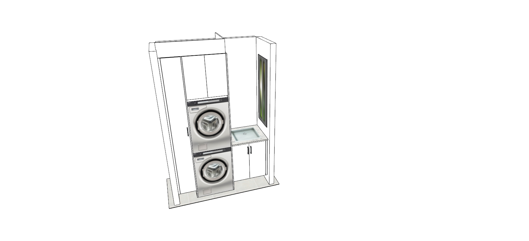 flat white cupboard panels beams of sunlight coming in