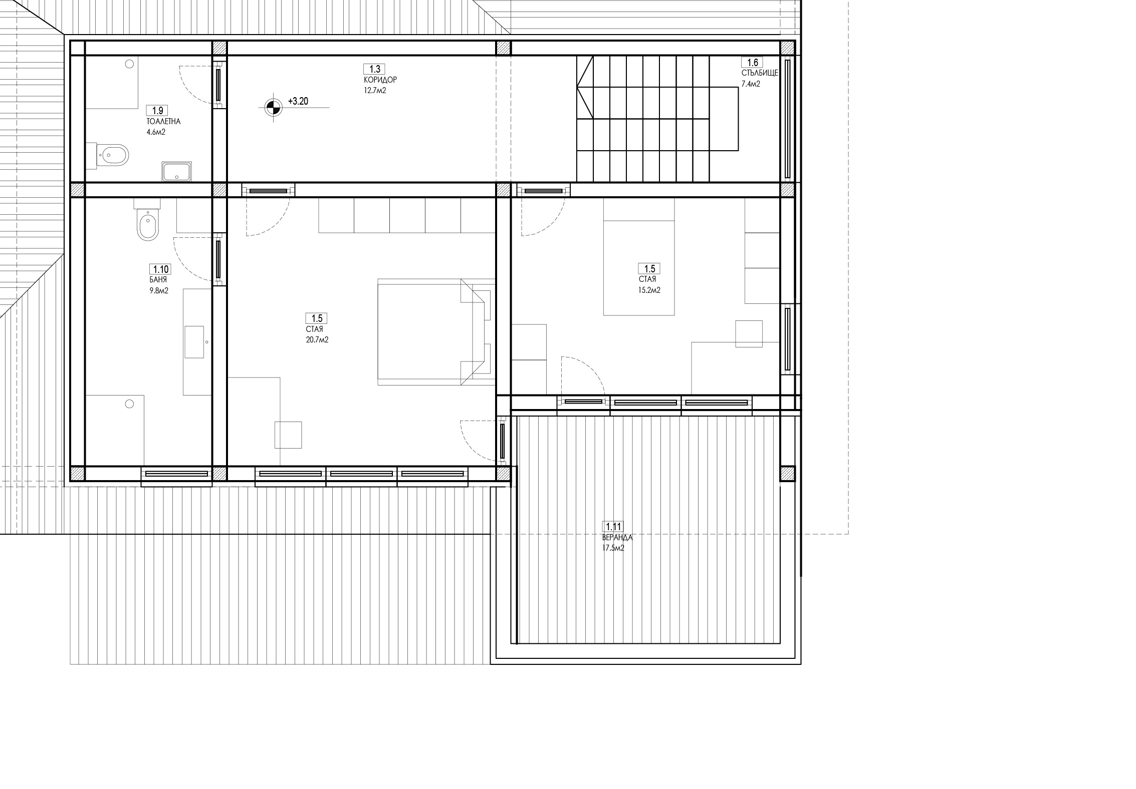 convert this floor plan into a realistic isometric 3d view of a full house show the space from an elevated angle with furniture walls and details visible second floor of a contemporary house use the same furniture as shows on the plan do not change the orientation of the floorplan