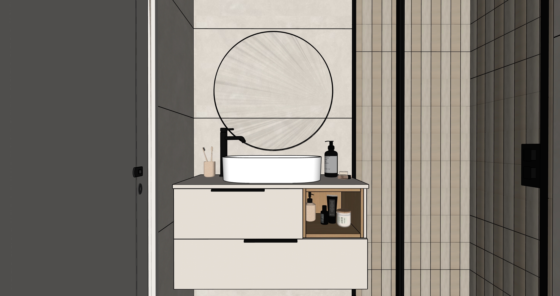 crea una imagen fotorealista a partir de ests de sketchup realza texturas e iluminacion e esppejo va iluminado