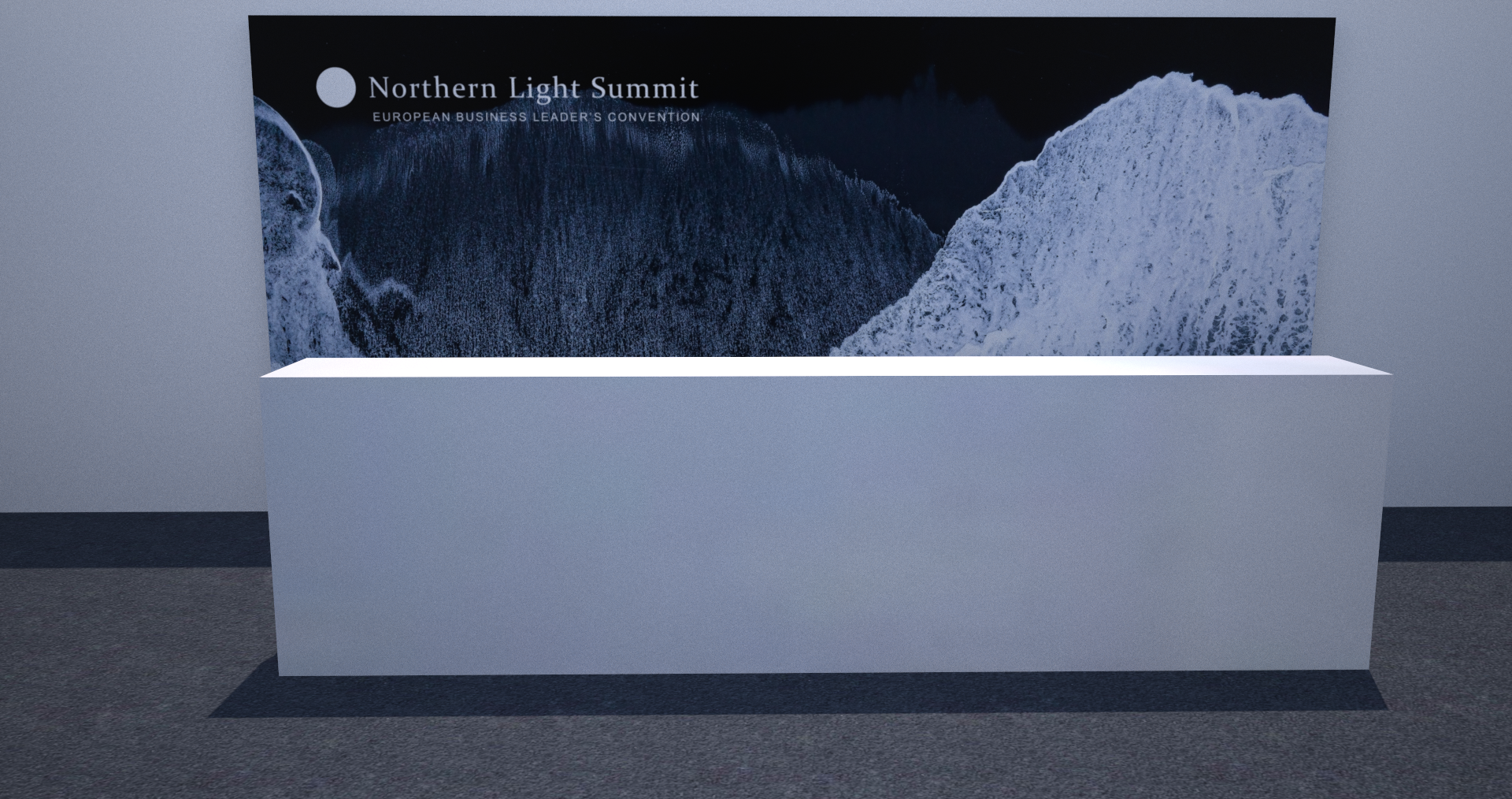 while maintaining the back wall image and logo the desk in front should be chrome mirror covered