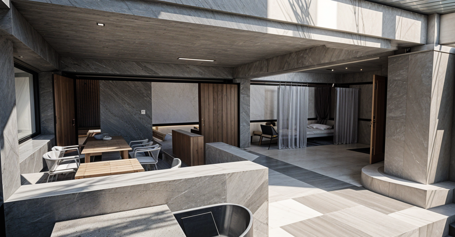 contemporary interior shot add tv unite sofa and lights on ceiling curtains and tile architecture